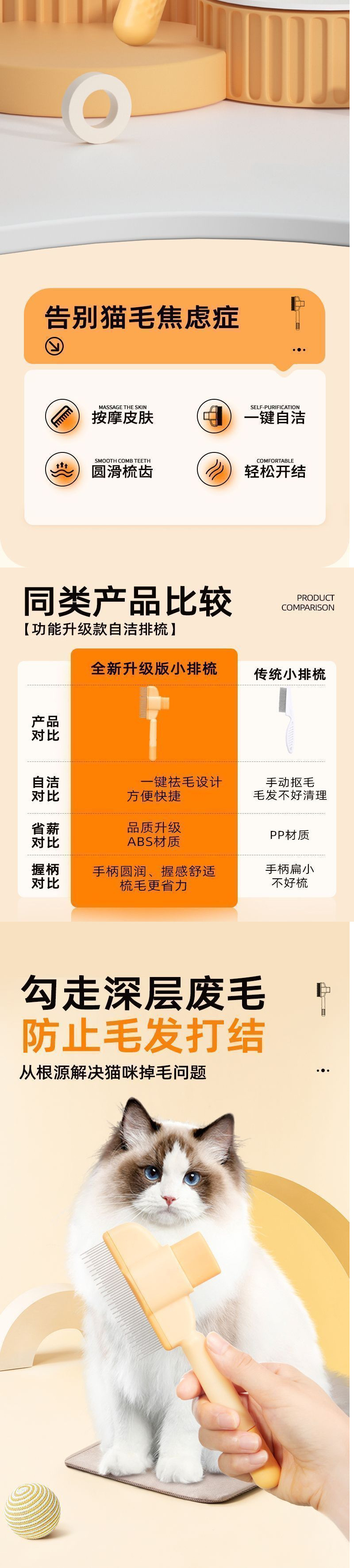 • 고양이 제모: [기능: 목욕 및 마사지] 자가 청소 바늘 빗