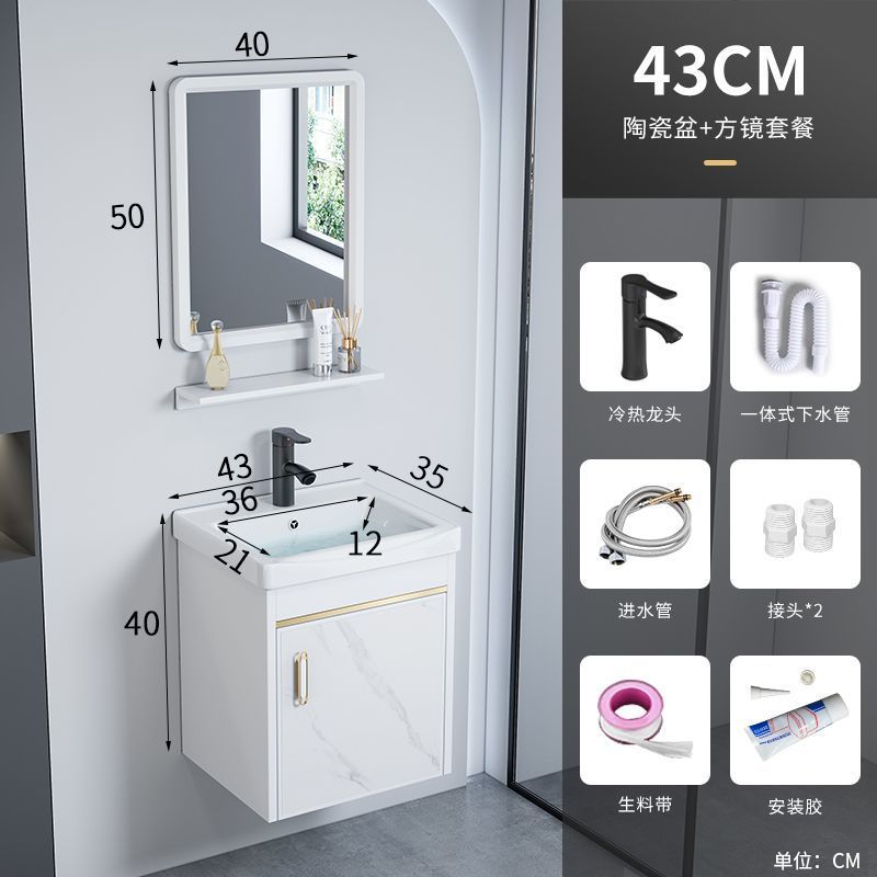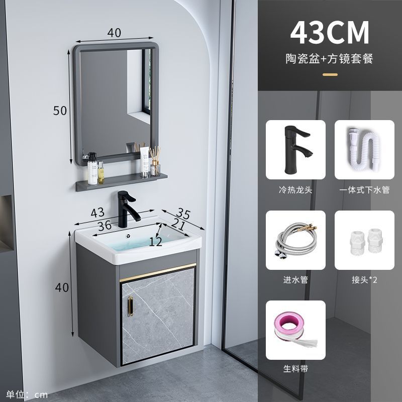 • 백금석 패턴 캐비닛-43*35 세라믹 세면대 + 거울 캐비닛
