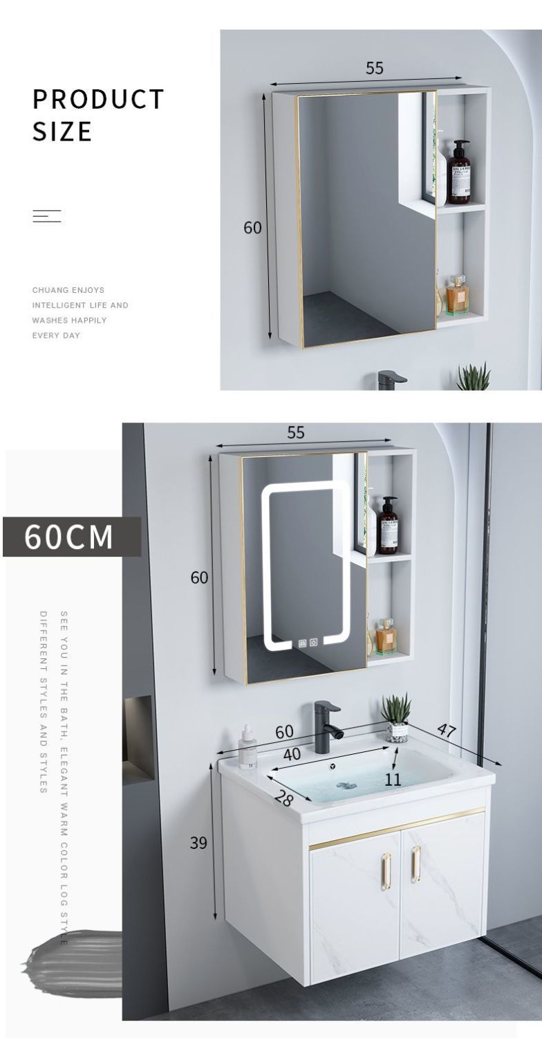 • 백금석 패턴 캐비닛-60*40 세라믹 세면대 + 스마트 거울