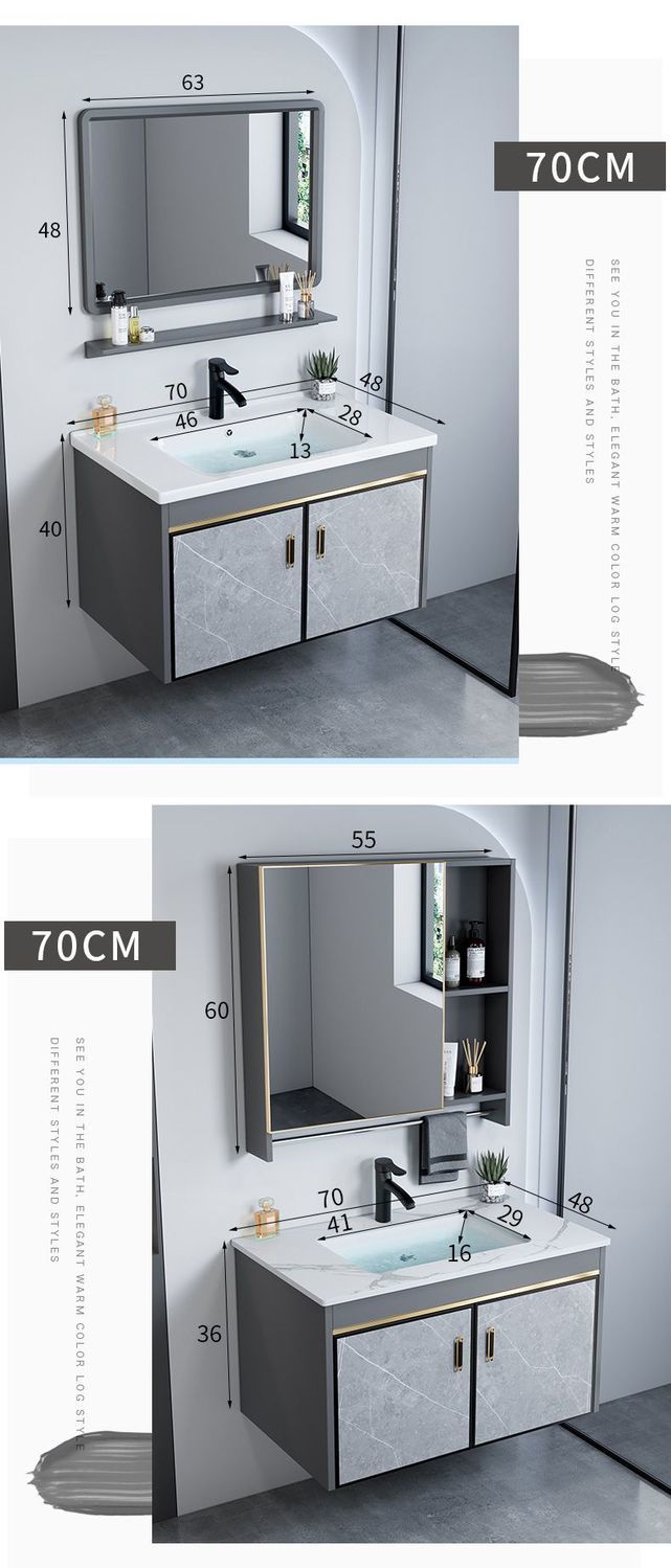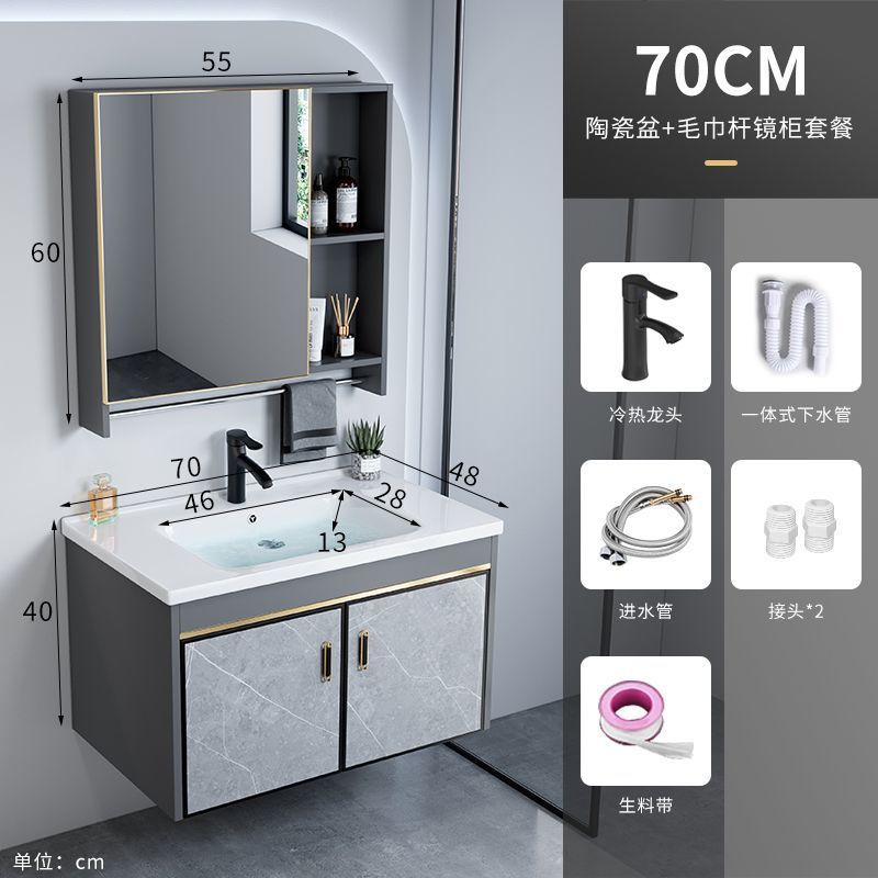 • 그레이 골드 스톤 패턴 캐비닛-70*48 세라믹 세면대 + 수건 거울 캐비닛