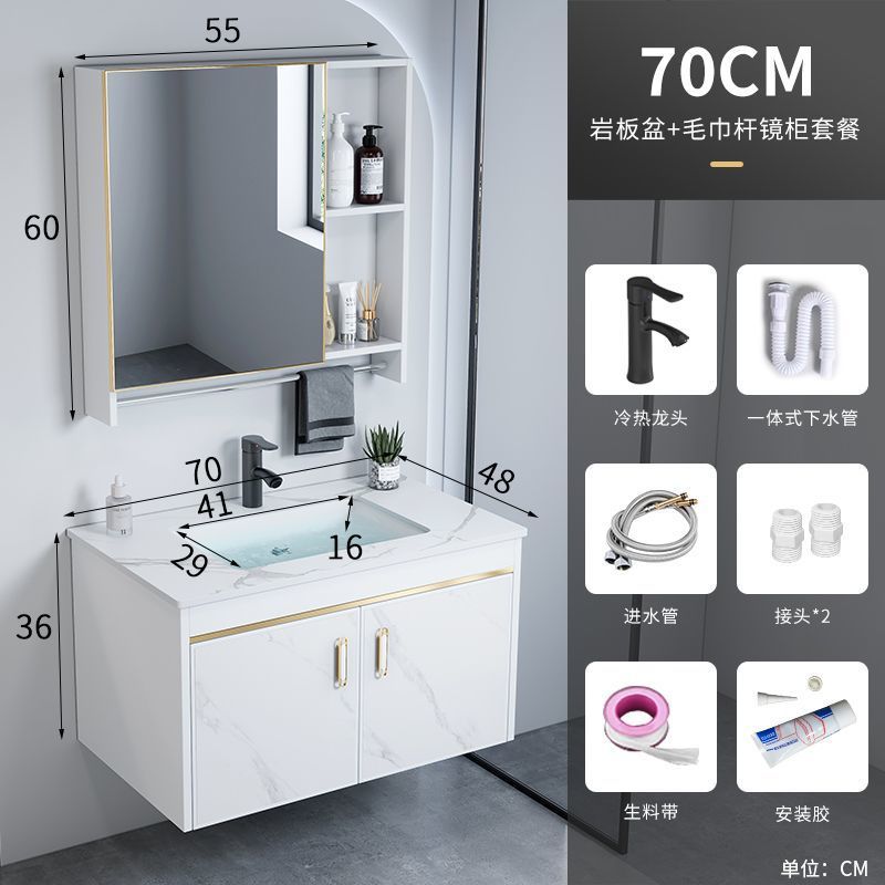 • 백금석 패턴 캐비닛-70*48 슬레이트 세면대 + 수건 거울 캐비닛