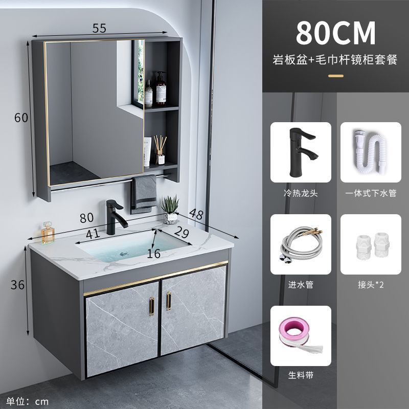 • 그레이 골드 스톤 패턴 캐비닛-80*48 슬레이트 세면대 + 수건 거울 캐비닛