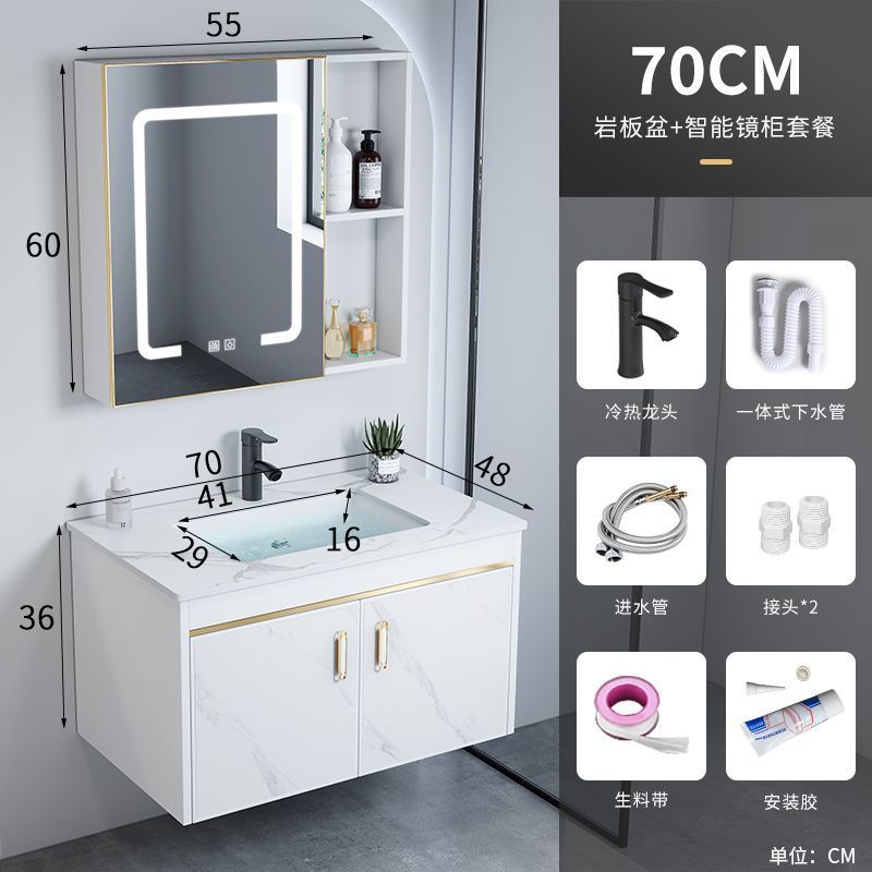 • 백금석 패턴 캐비닛-70*48 슬레이트 세면대 + 스마트 거울 캐비닛