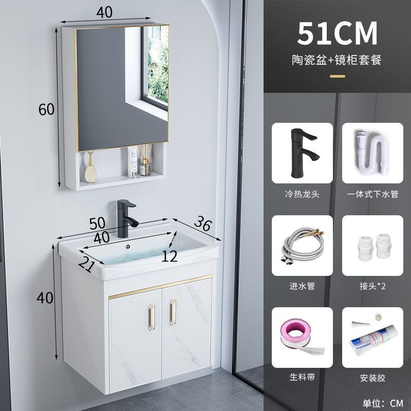 • 백금석 패턴 캐비닛-50*36 세라믹 세면대 + 거울 캐비닛