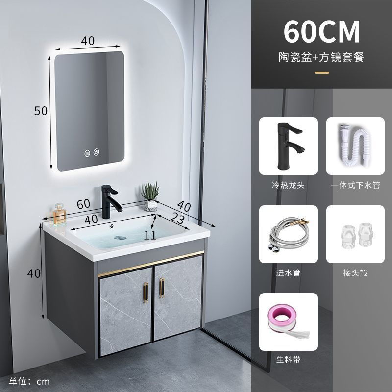 • 그레이 골드 스톤 패턴 캐비닛-60*40 세라믹 세면대 + 스마트 거울 캐비닛