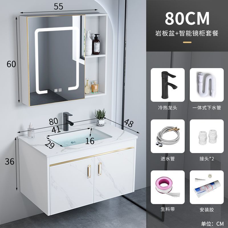 • 백금석 패턴 캐비닛-80*48 슬레이트 세면대 + 스마트 거울 캐비닛