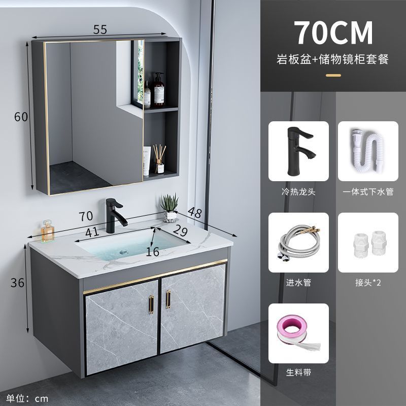 • 그레이 골드 스톤 패턴 캐비닛-70*48 슬레이트 세면대 + 수건 거울 캐비닛