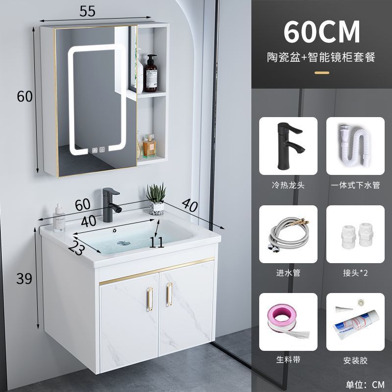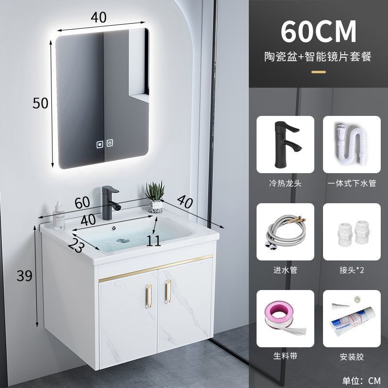 • 백금석 패턴 캐비닛-60*40 세라믹 세면대 + 스마트 거울 캐비닛