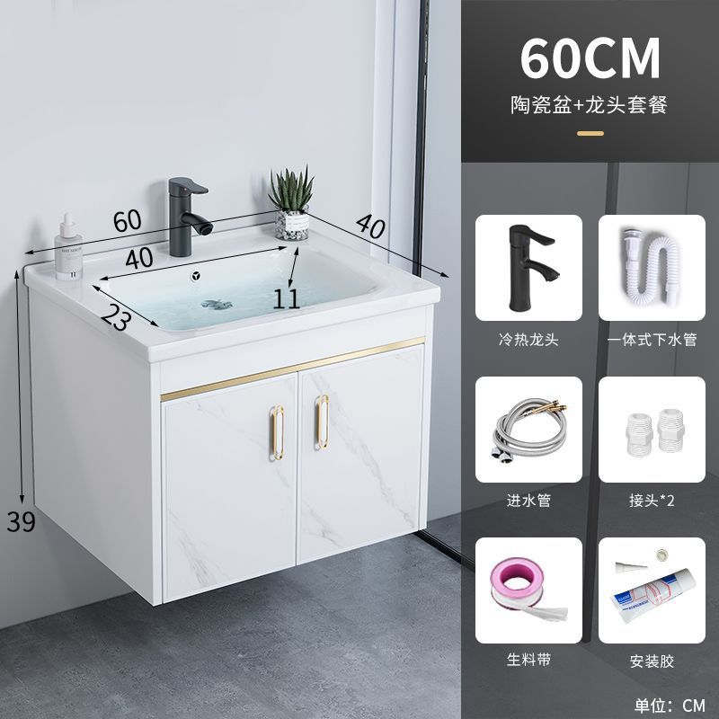 • 백금석 패턴 캐비닛-60*40 세라믹 세면대 + 거울 캐비닛
