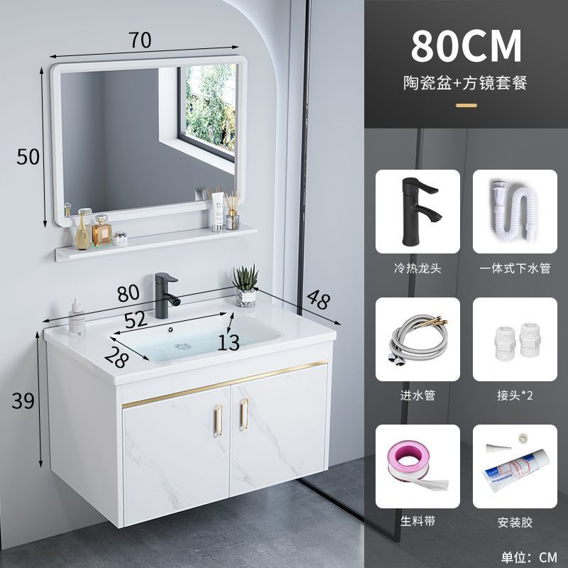 • 백금석 패턴 캐비닛-80*48 세라믹 세면대 + 거울 캐비닛