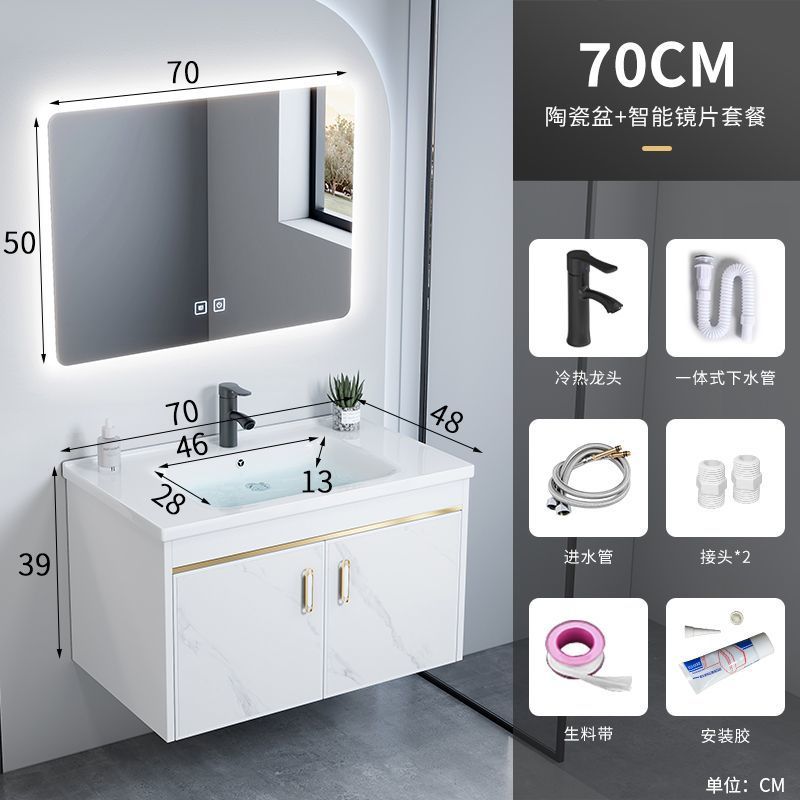 • 백금석 패턴 캐비닛-70*48 세라믹 세면대 + 스마트 거울
