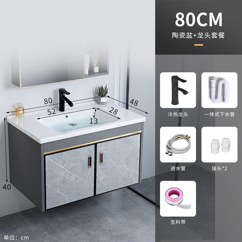 • 그레이 골드 스톤 패턴 캐비닛-80*48 세라믹 세면대 + 거울 캐비닛