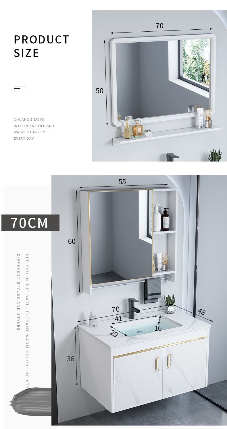 • 백금석 패턴 캐비닛-70*48 세라믹 세면대 + 수건 거울 캐비닛
