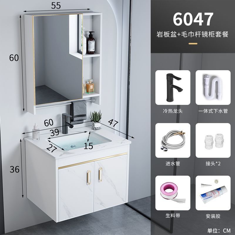 • 백금석 패턴 캐비닛-60*47 슬레이트 세면대 + 거울 캐비닛