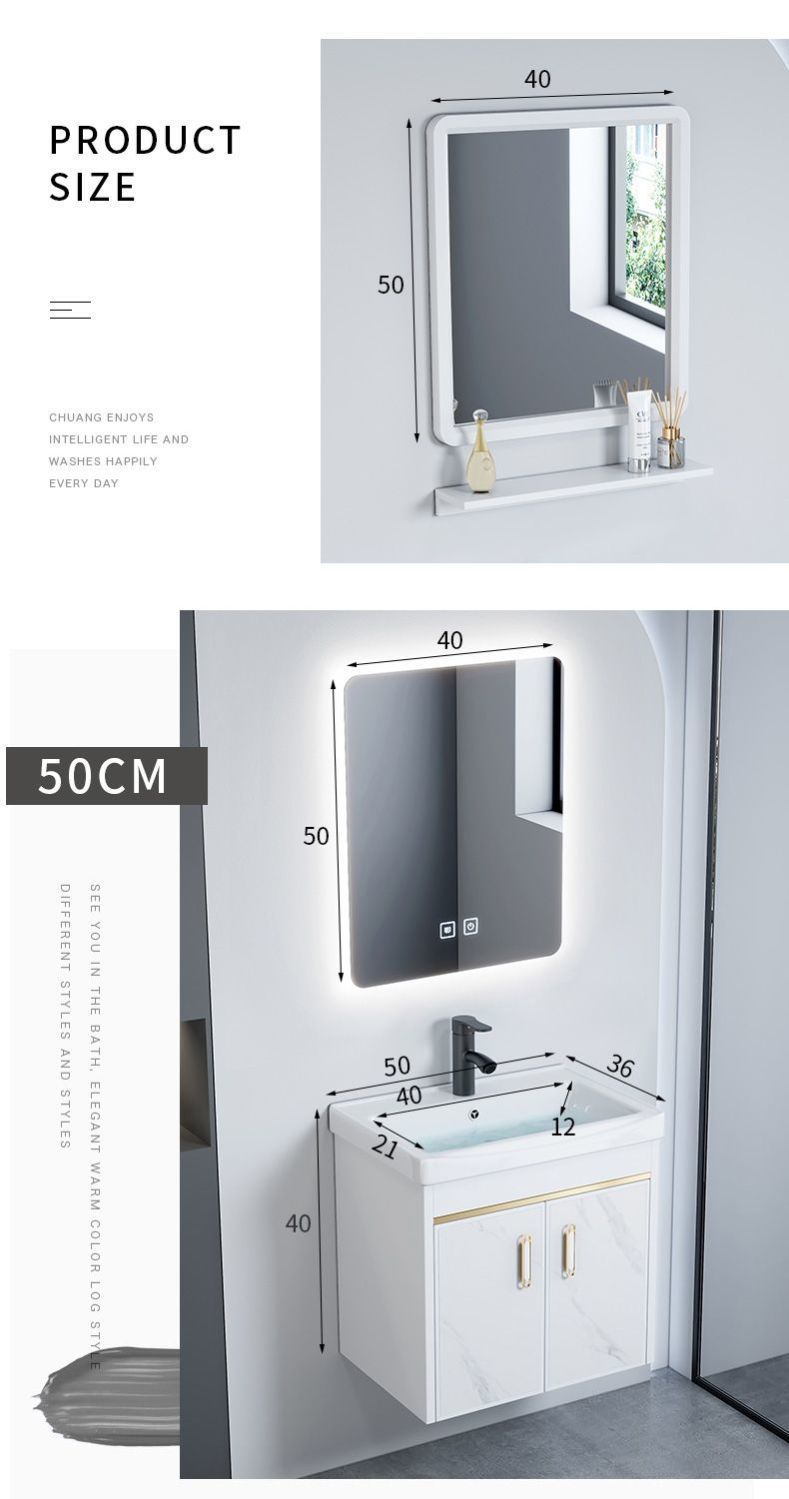 • 백금석 패턴 캐비닛-50*36 세라믹 세면대 + 스마트 거울