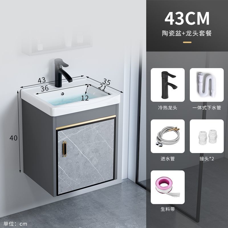 • 그레이 골드 스톤 패턴 캐비닛-43*35 세라믹 세면대 + 거울 캐비닛
