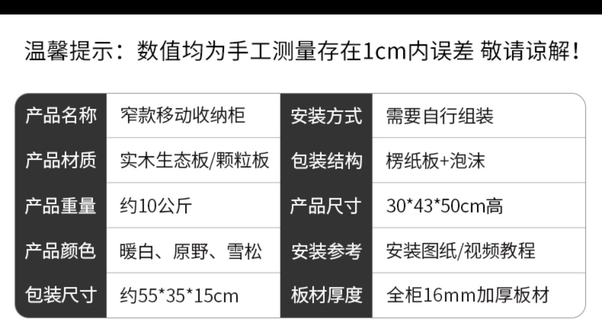 • 30*43*50 높은 따뜻한 흰색 브레이크 휠 [조립 필요] 전체 캐비닛 15mm 두꺼운 플레이트