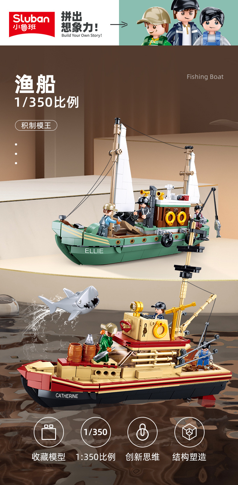 리틀루반 B1118B1119 어선 모델 어린이 교육용 조립 블록 장난감 해외 선물 큐브스토어 가기