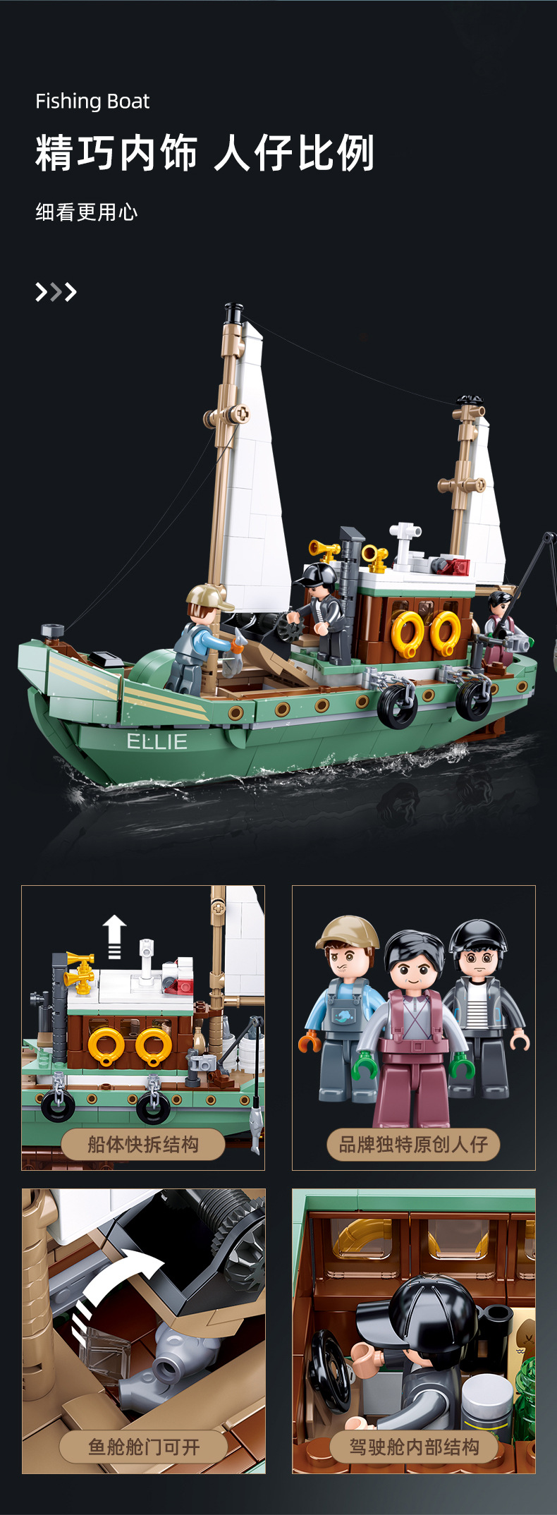 리틀루반 B1118B1119 어선 모델 어린이 교육용 조립 블록 장난감 해외 선물 큐브