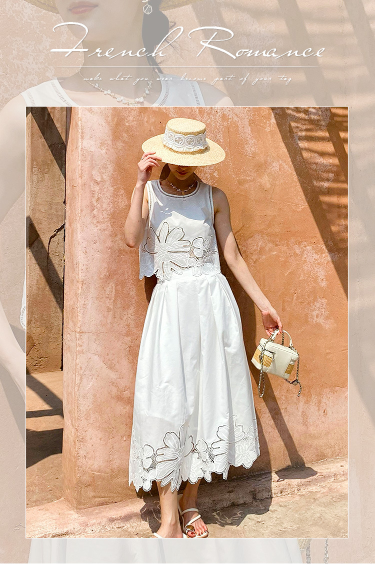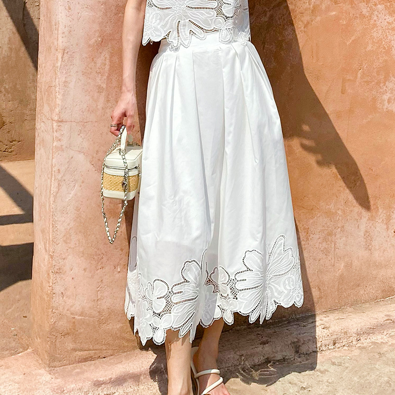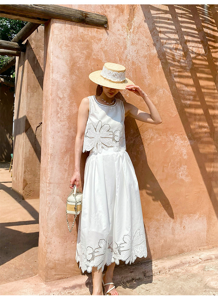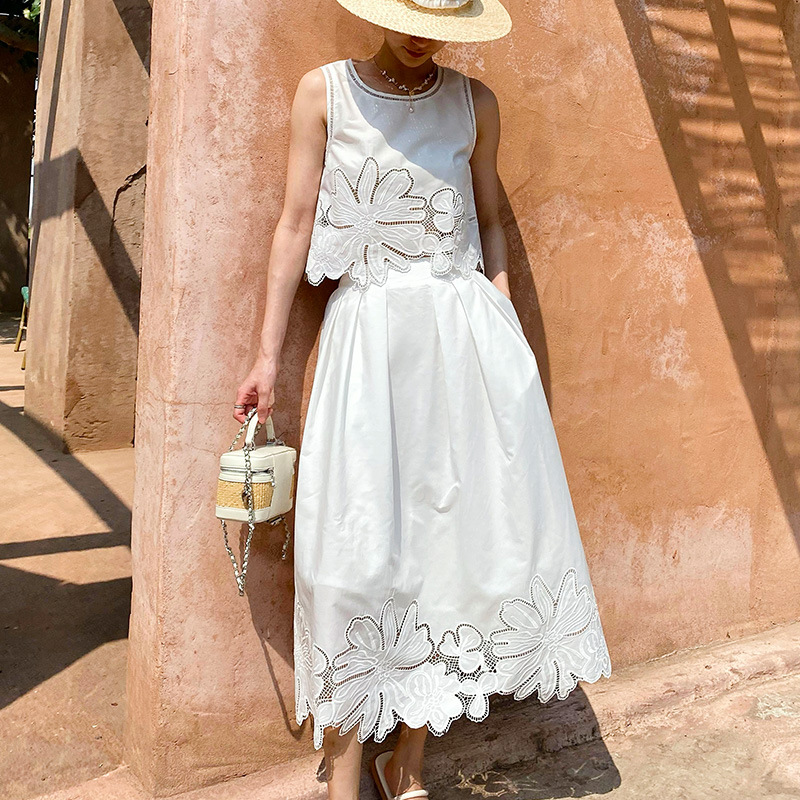 여름 프랑스 할로우 탑 자수 스커트 여성 사교계 스타일 화이트 세트 심천 난유 여성 원피스
