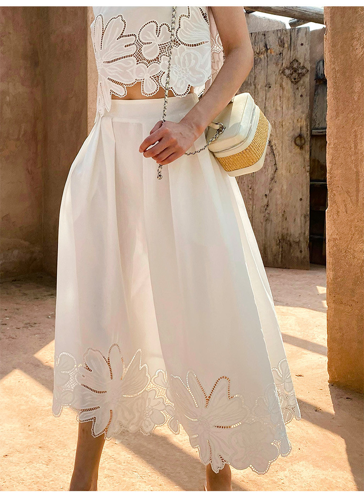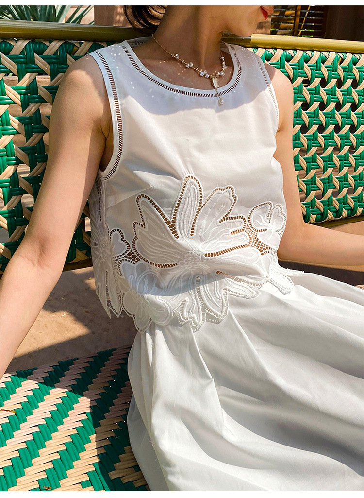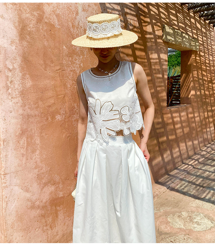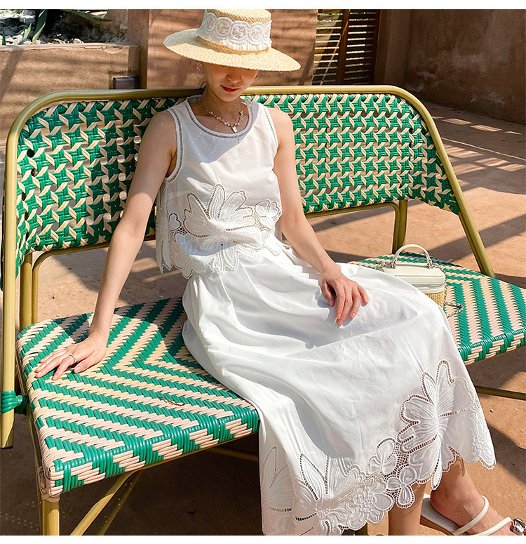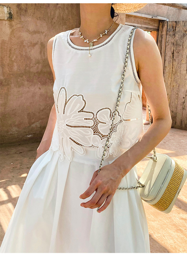 여름 프랑스 할로우 탑 자수 스커트 여성 사교계 스타일 화이트 세트 심천 난유 여성 원피스