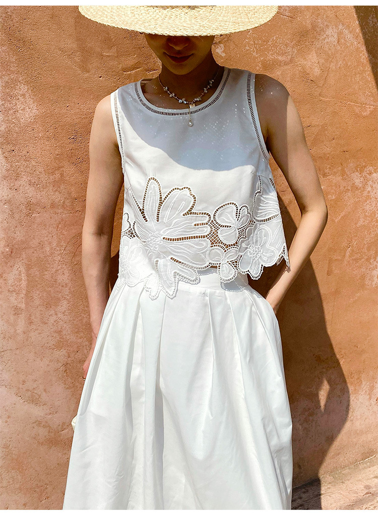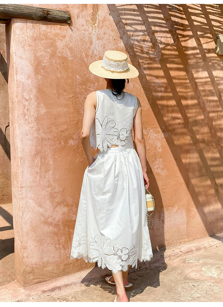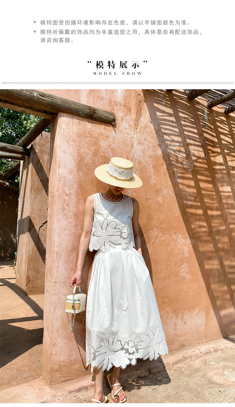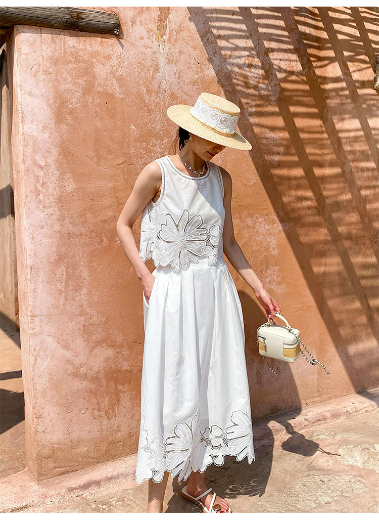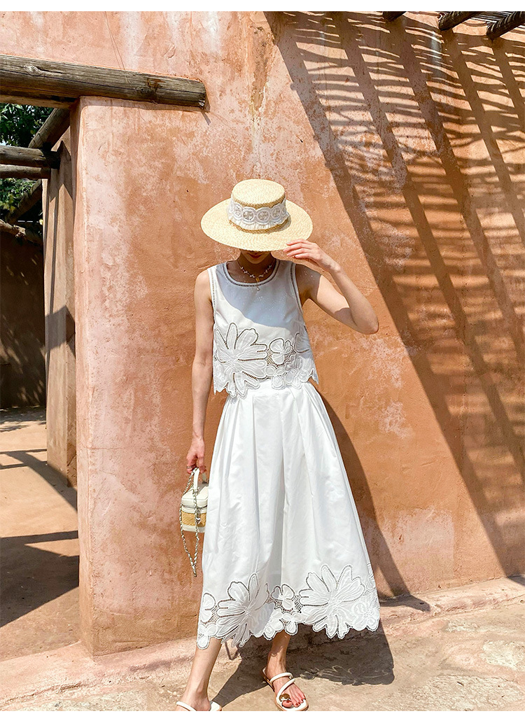 여름 프랑스 할로우 탑 자수 스커트 여성 사교계 스타일 화이트 세트 심천 난유 여성 원피스스토어 가기