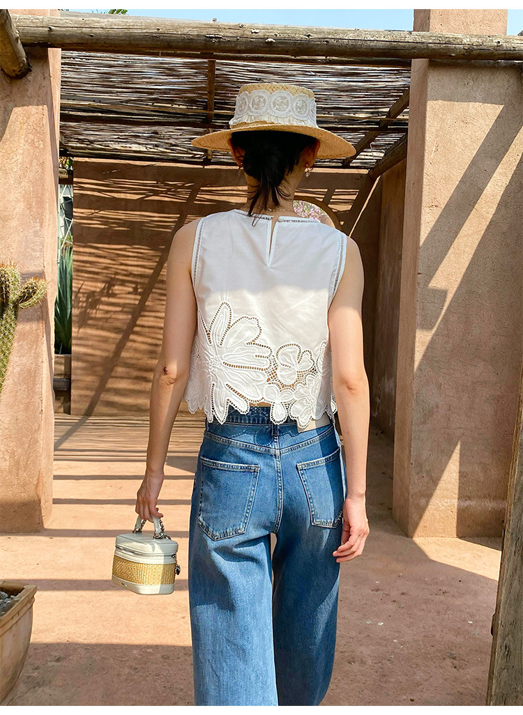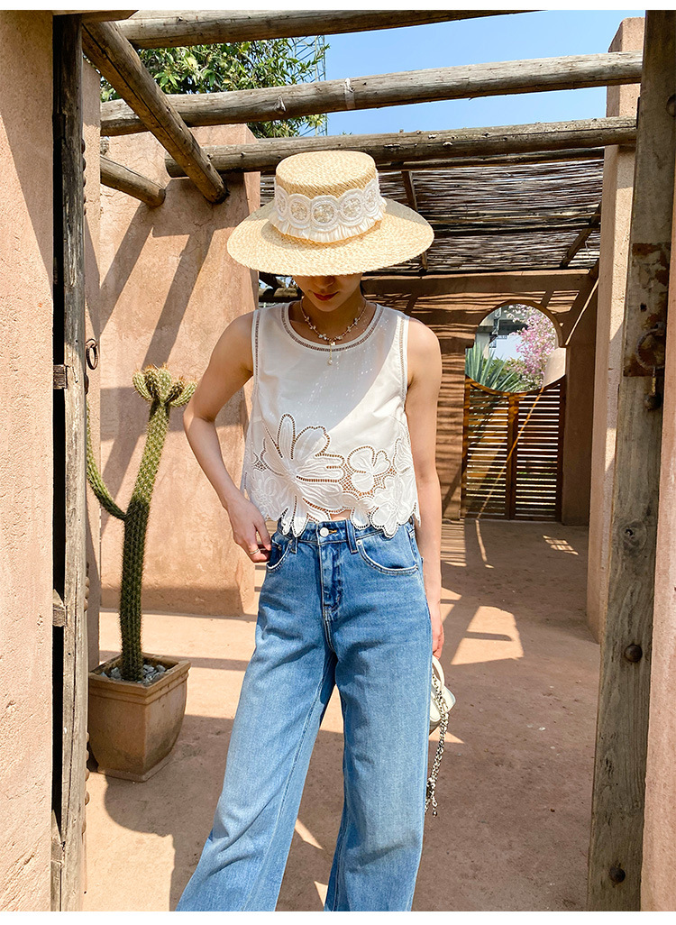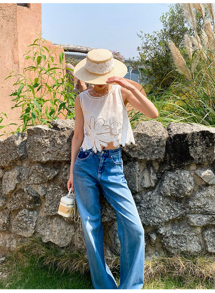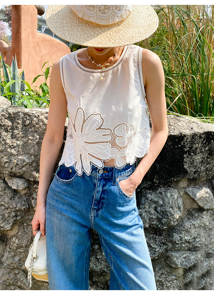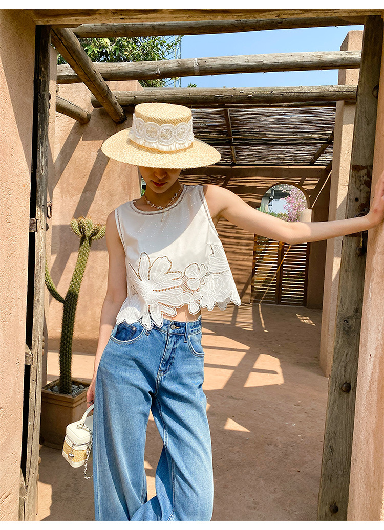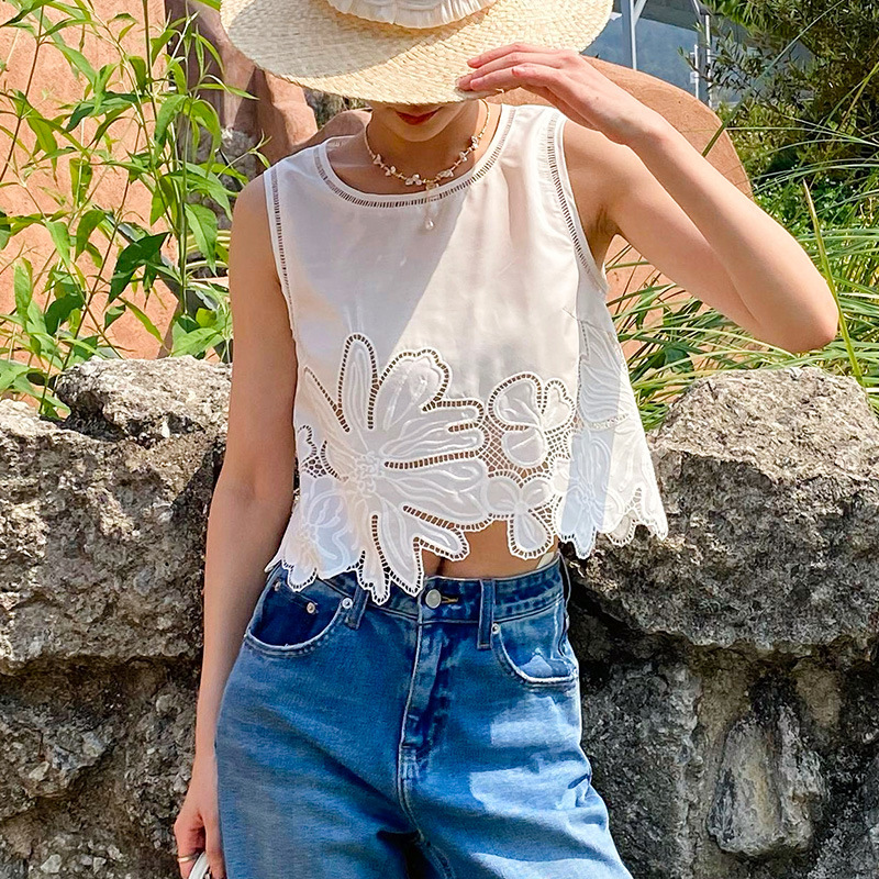 여름 프랑스 할로우 탑 자수 스커트 여성 사교계 스타일 화이트 세트 심천 난유 여성 원피스스토어 가기