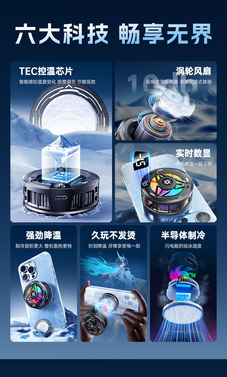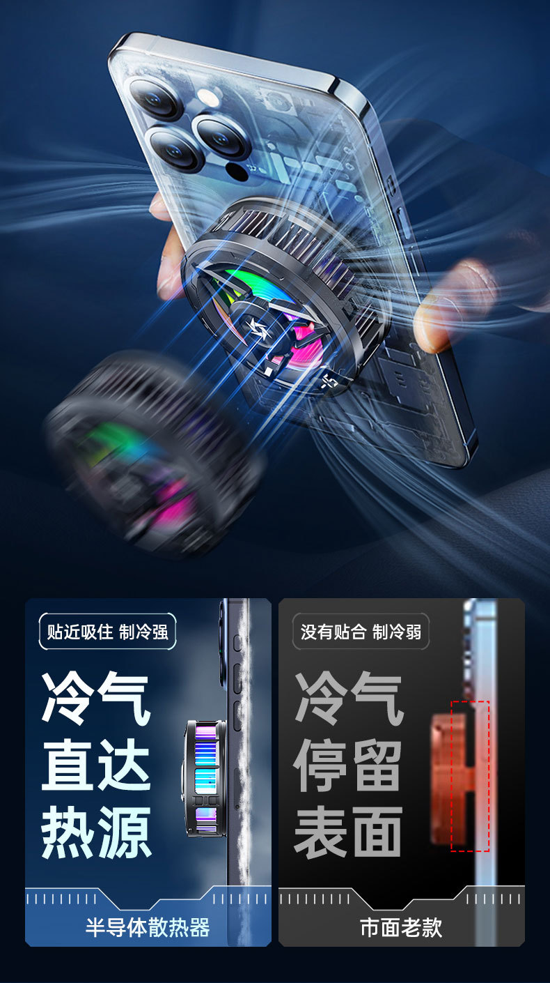 반도체 휴대폰 라디에이터 수냉식 팬 디지털 디스플레이 대형 면적 냉동 얼음 냉각 유물 자기 플러그인 모델스토어 가기