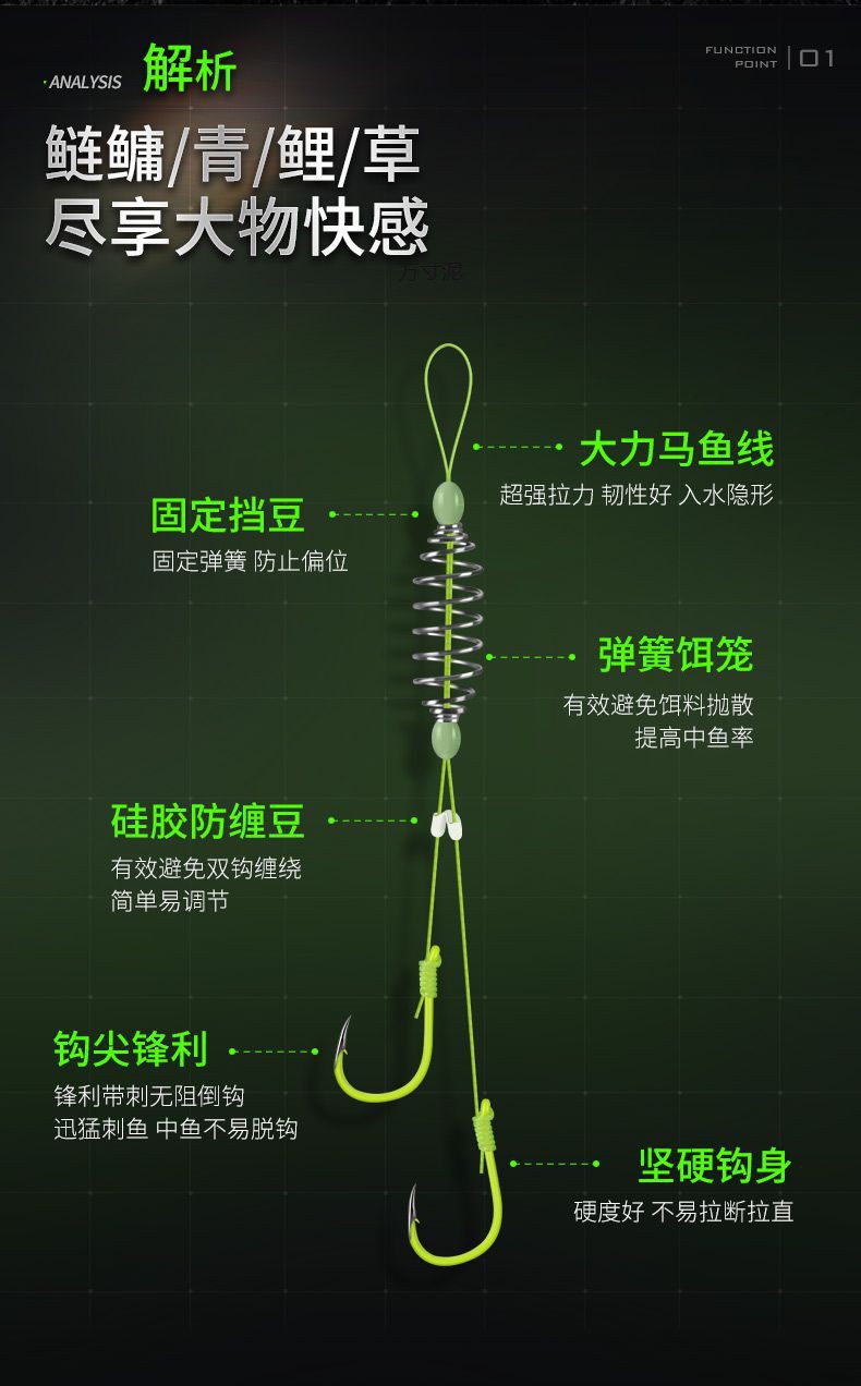 • 스프링 더블훅 은잉어 및 대머리 잉어 낚시 그룹(엉킴 방지 콩 없음)
