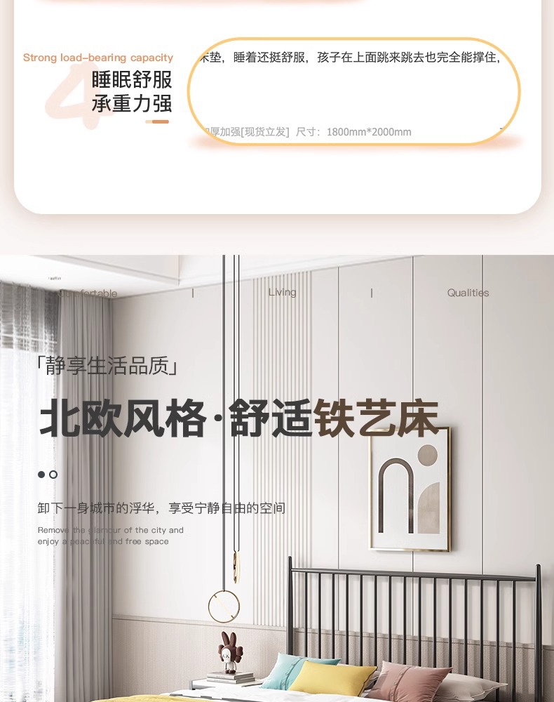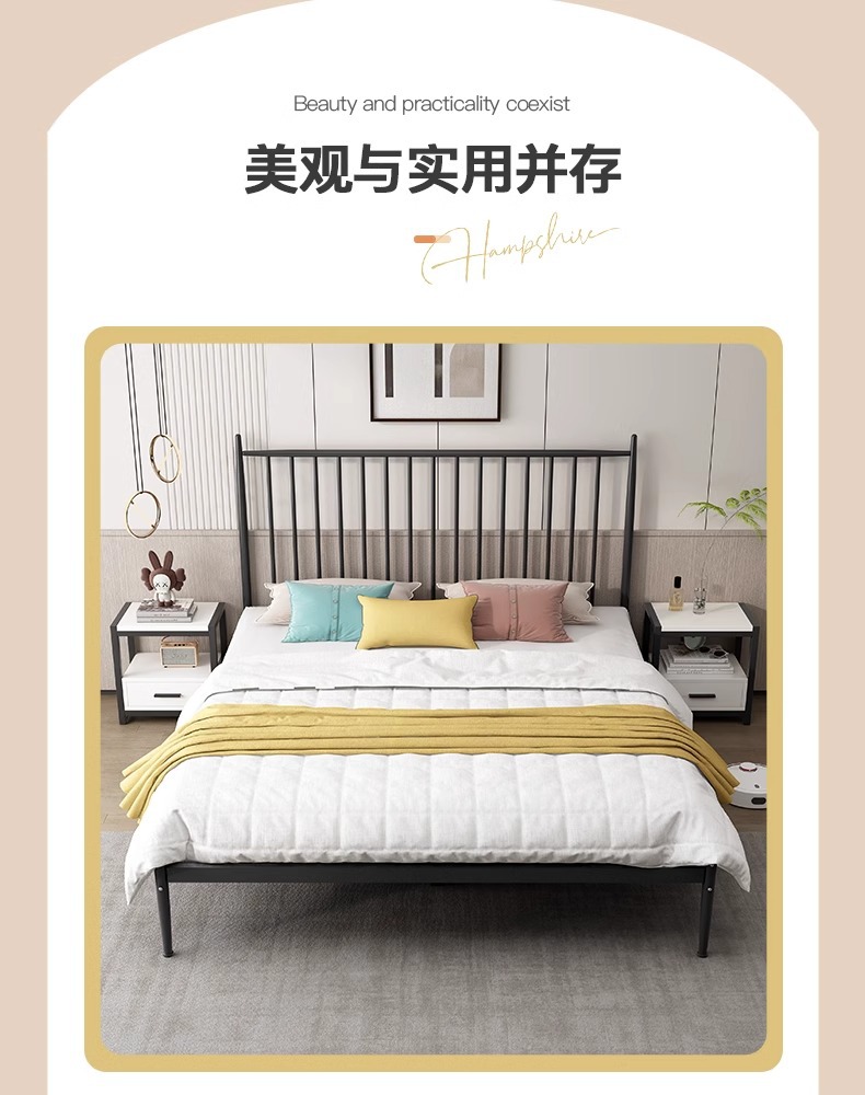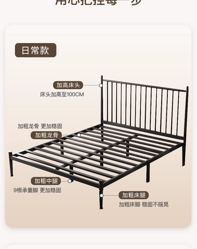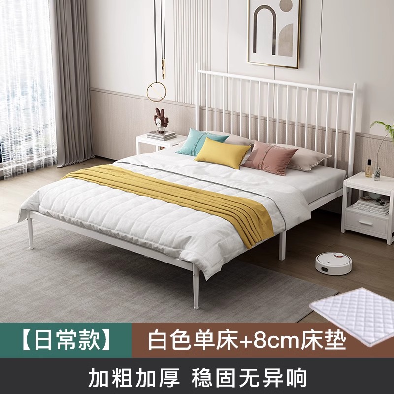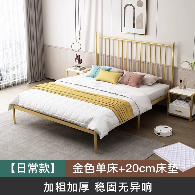 가정용 침실을 위한 단철 침대 더블 침대 현대적인 단순 경제적 1.5m 두꺼운 두꺼운 행 뼈대 싱글 침대p^스토어 가기