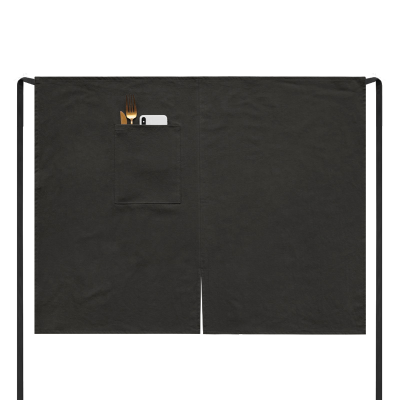 • 면 및 린넨 슬릿 하프 바디 - 블랙(스트레이트 포켓)