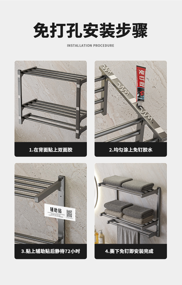 공장 직접 판매 욕실 수건 걸이 욕실 보관함 펀치없는 화장실 세면대 벽걸이 형 보관함