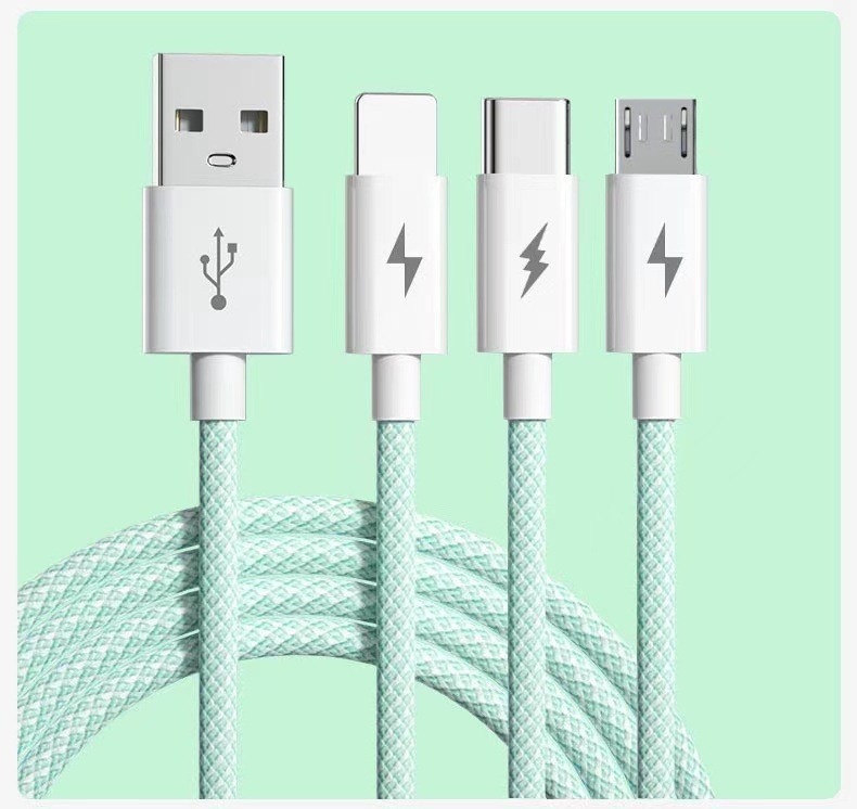 产品亮点:3A快充,一线三充,炫彩编织,接口加固防断裂,Type-c接口支持数据传输