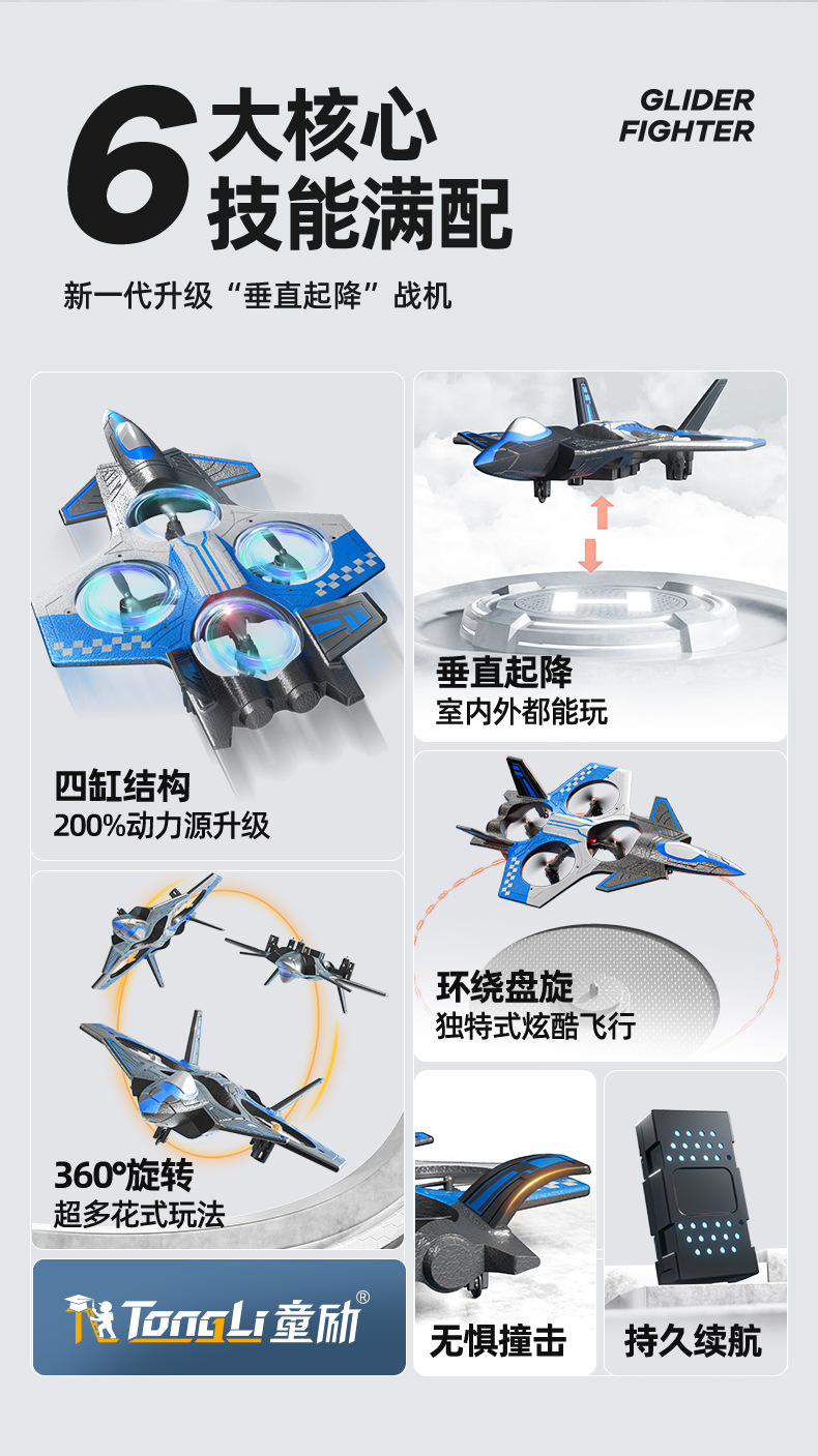 • 초대형 업그레이드 버전-스턴트 전투기 [360°Tianling+-키 이륙 및 착륙]-EU 품질-위장 블루