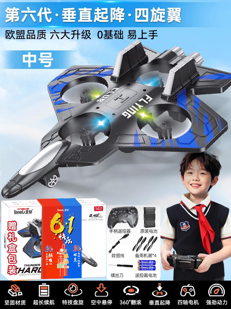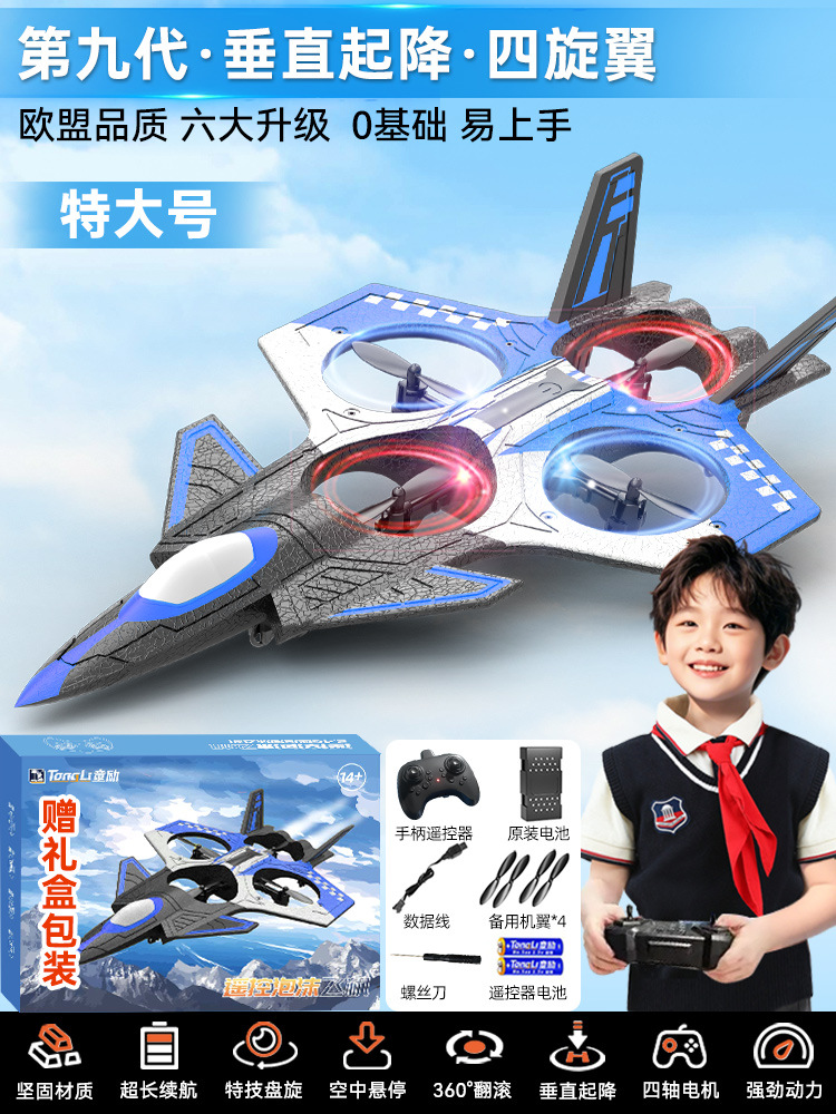 • [해피 어린이날 선물 포장] 초대형 - 업그레이드 버전 - 스턴트 전투기 [360°Tianling+-키 이륙 및 착륙]-EU 품질-블루
