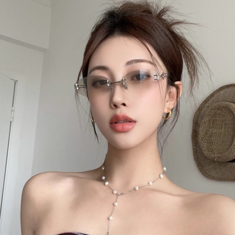 제니 프레임리스 괴짜 수은색 선글라스 여성 트렌디 패셔너블 오목한 모양 핫걸 여름 선글라스 쿨스토어 가기