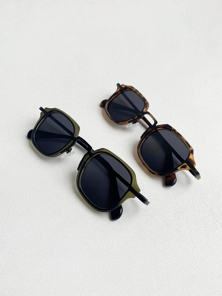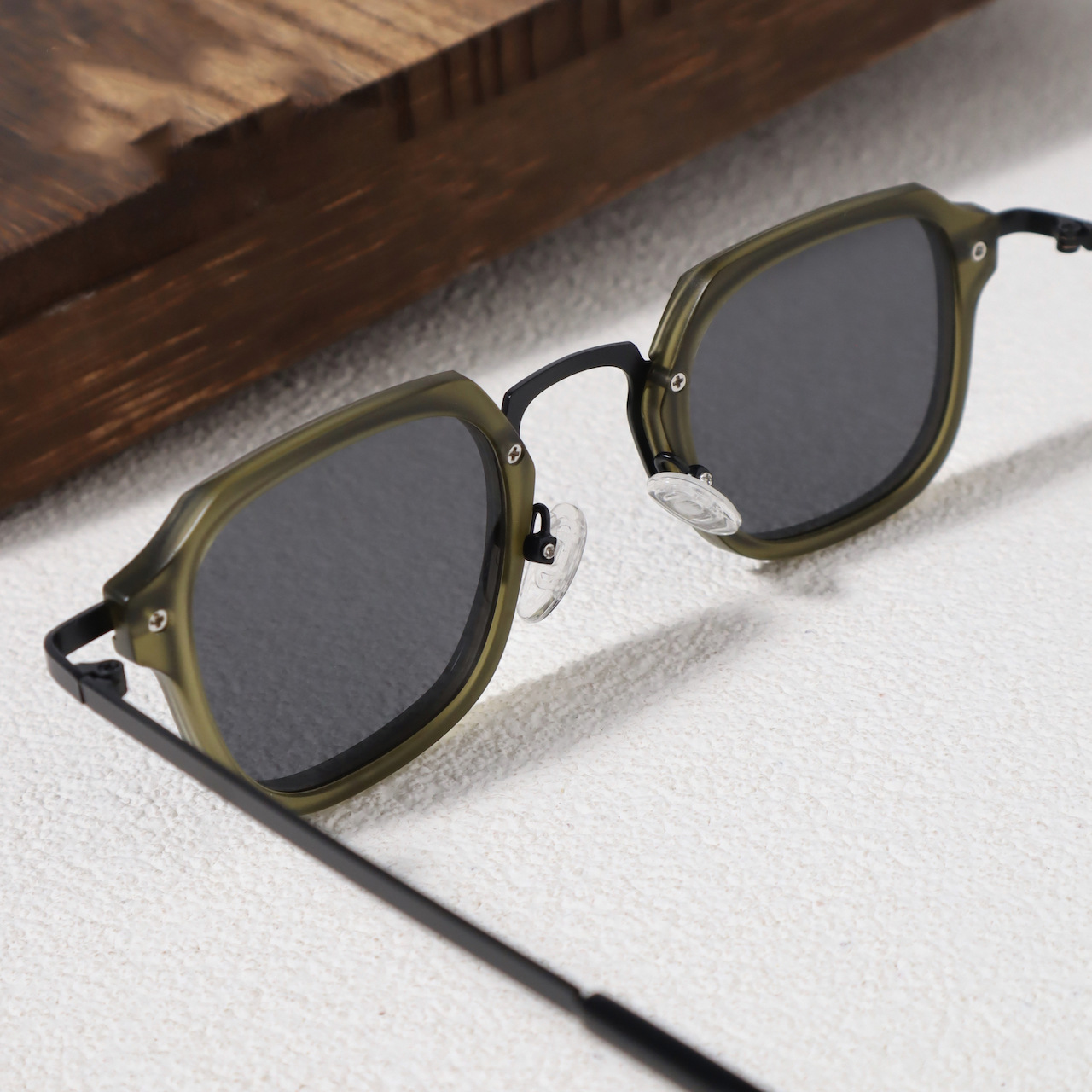 2024 새로운 딥 소나무 녹색 맞춤형 유행 선글라스 다각형 선글라스 남성용 자외선 차단제 아방가르드 안경