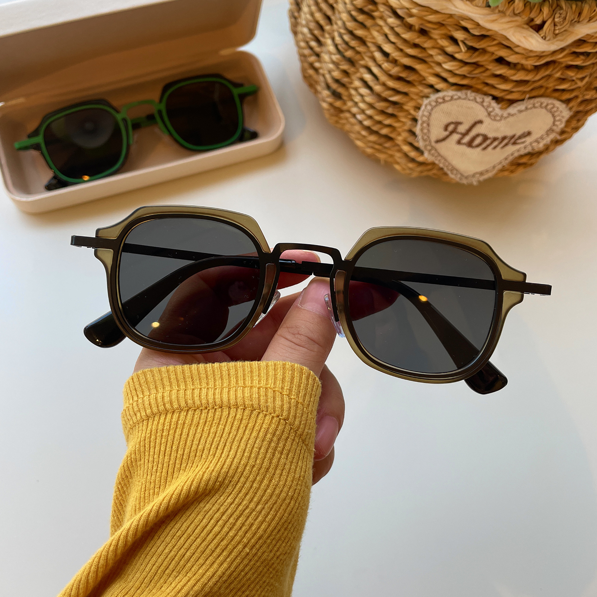2024 새로운 딥 소나무 녹색 맞춤형 유행 선글라스 다각형 선글라스 남성용 자외선 차단제 아방가르드 안경스토어 가기