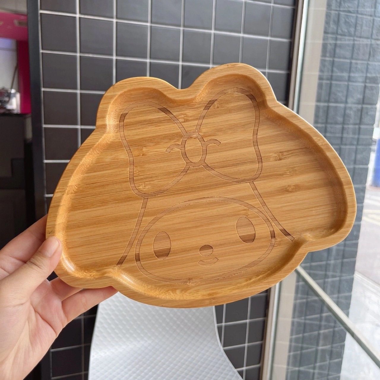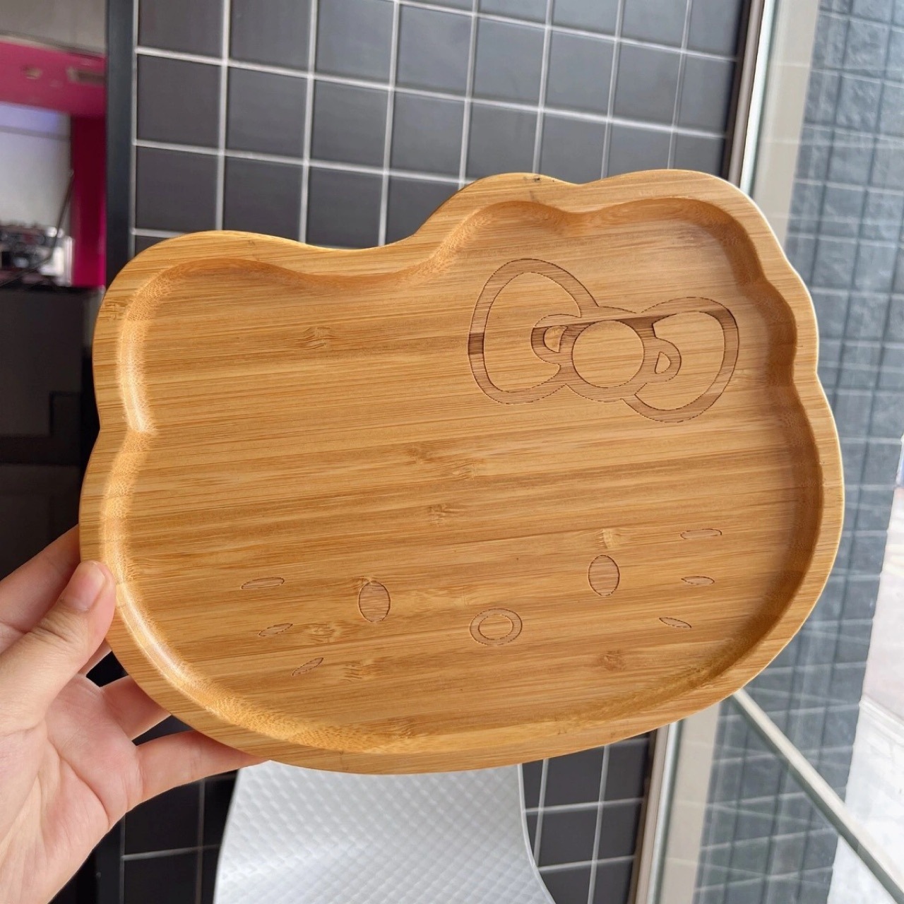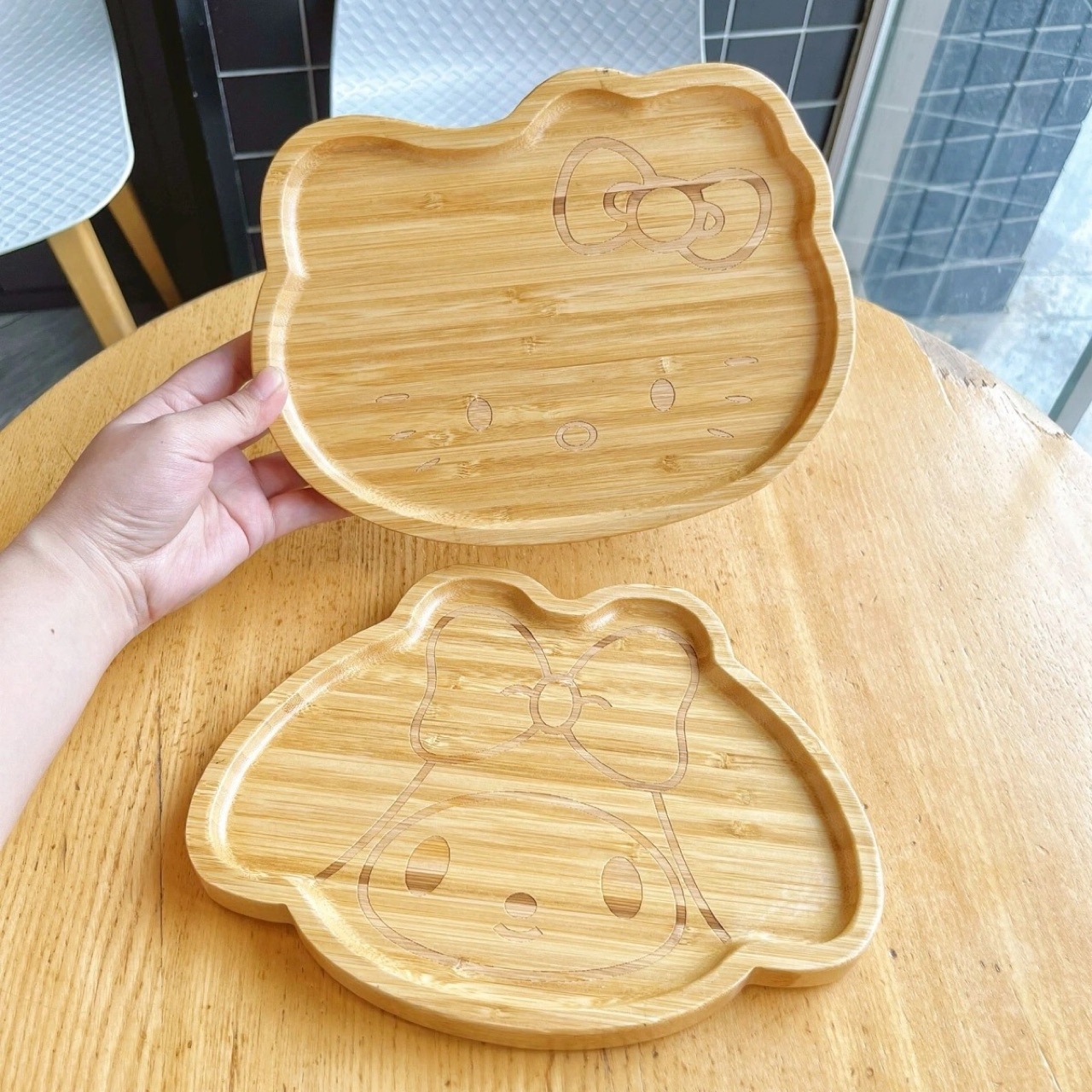 귀여운 키티 단단한 나무 트레이 가정용 나무 식기 소녀 하트 만화 멜로디 어린이 아기 저녁 식사 트레이
