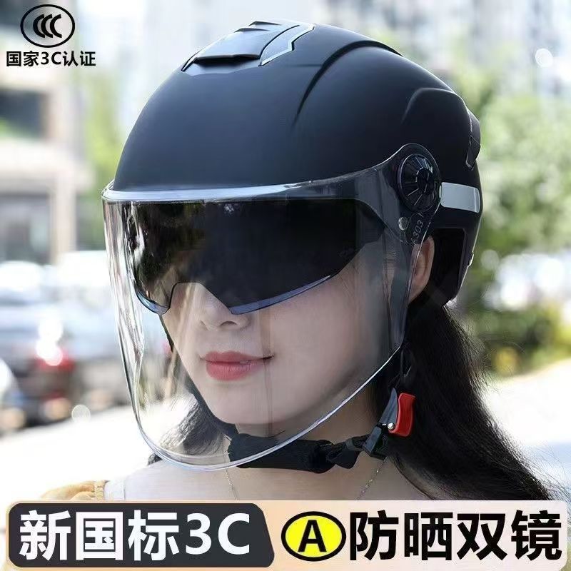 국가 표준 인증 여름 자외선 차단 이중 거울 반 헬멧 전기 자동차 헬멧 남성용 및 여성용 오토바이 올 시즌 헬멧