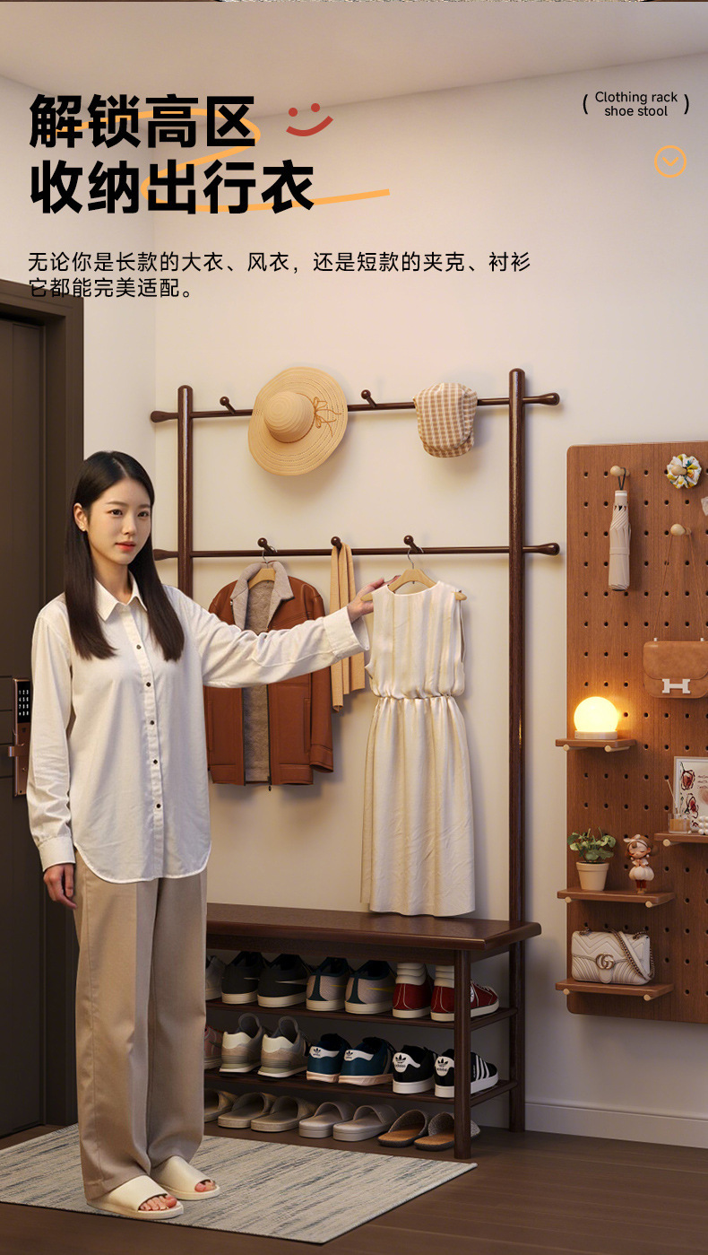 단단한 나무 신발 의자 통합 옷걸이 입구 입구 입구 입구 앉아 신발 캐비닛 코트 랙 가정용 신발 의자