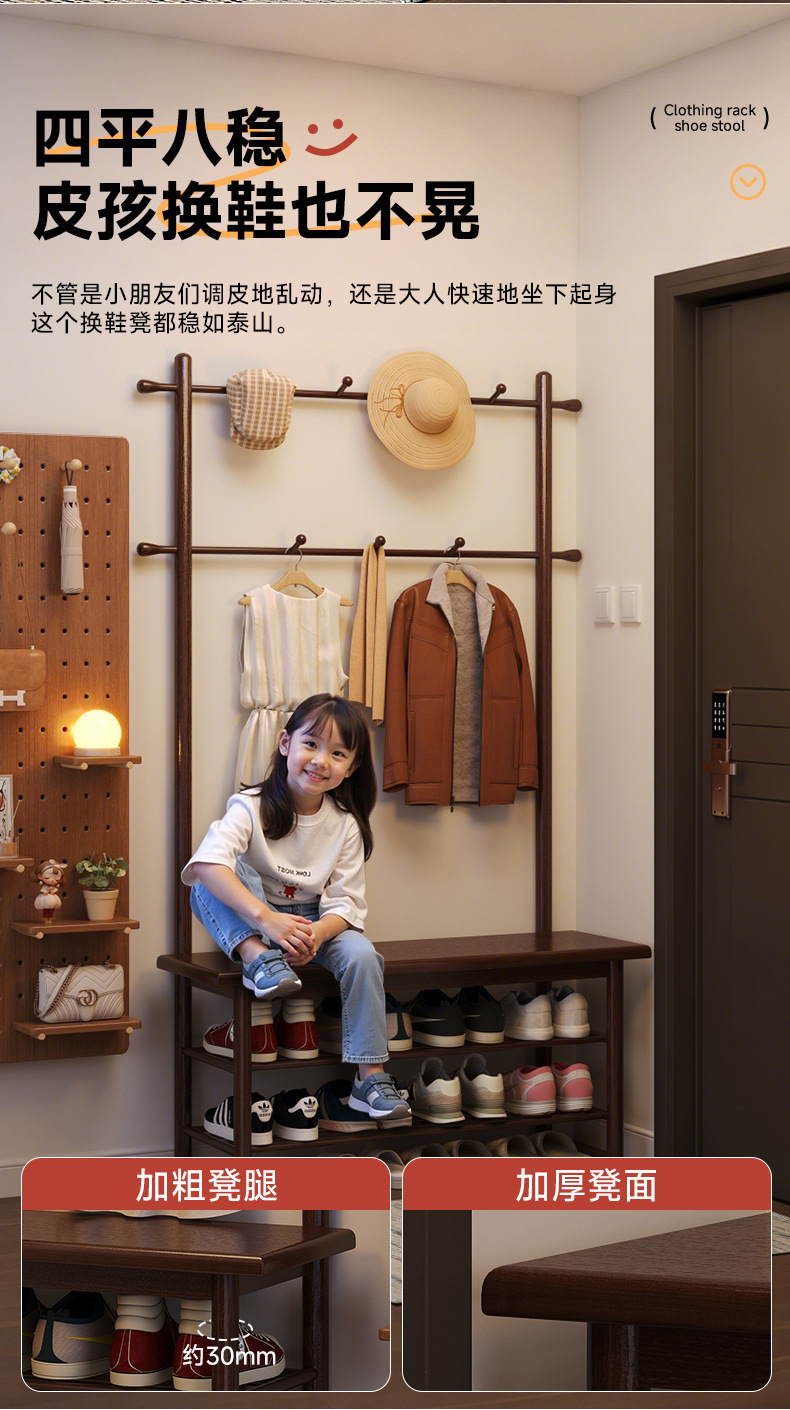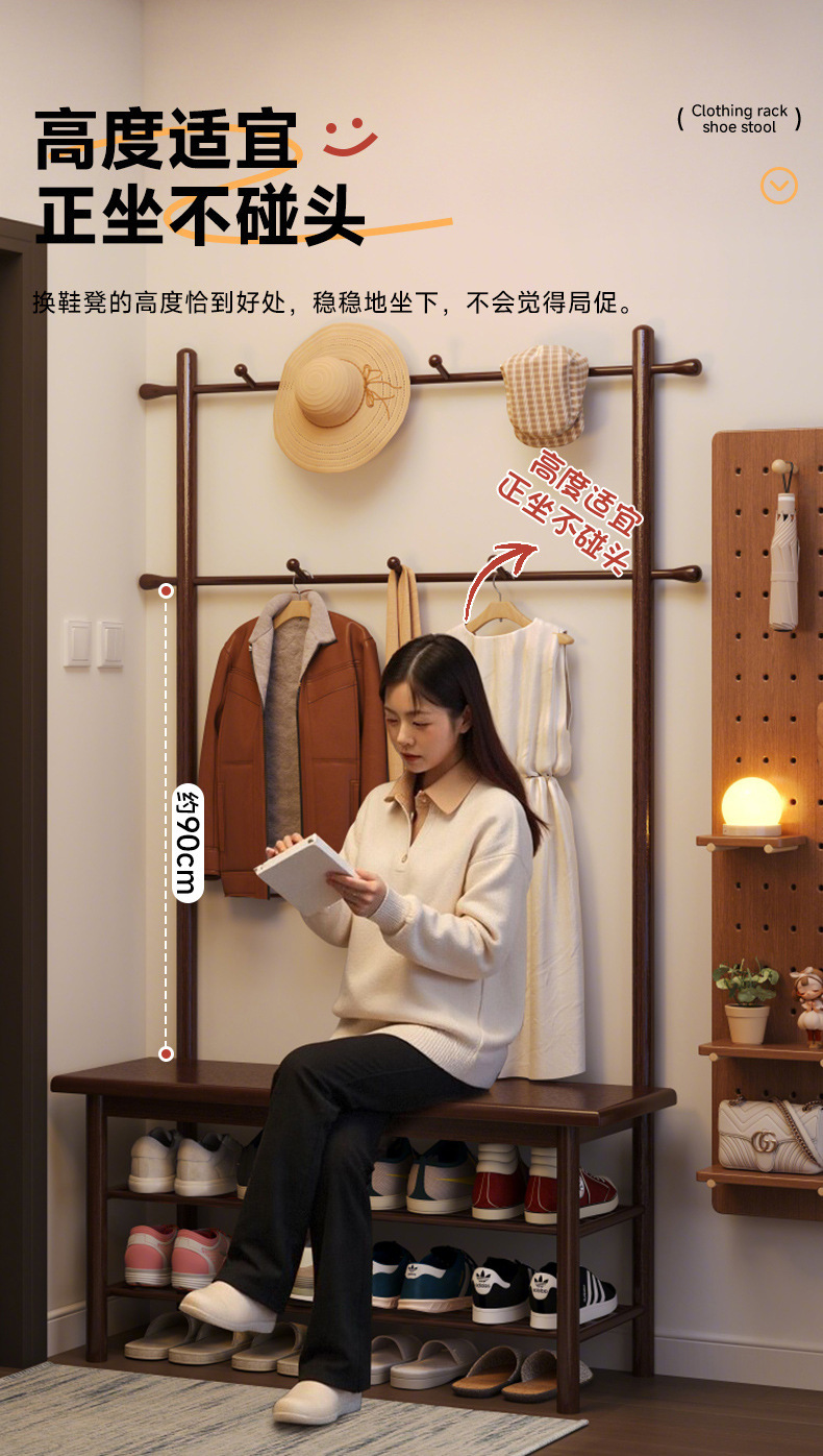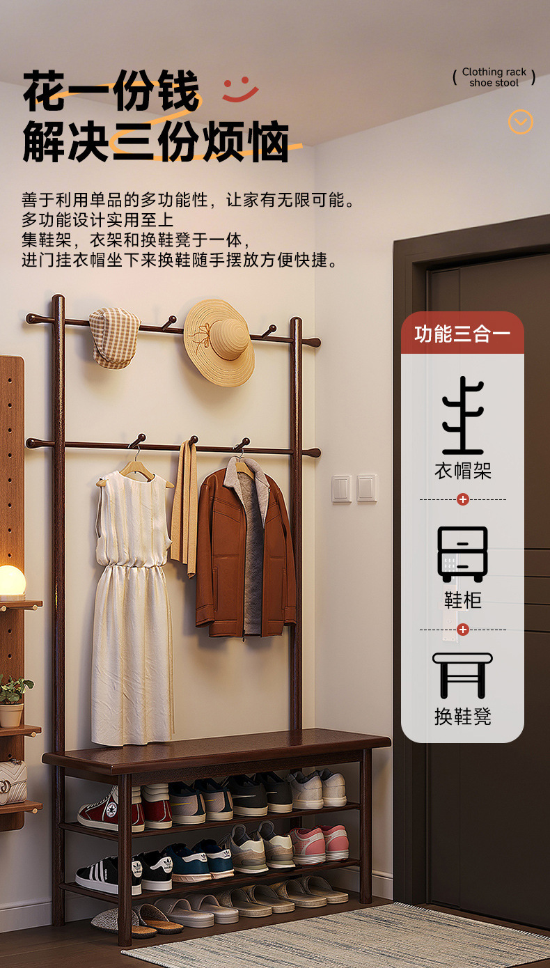 단단한 나무 신발 의자 통합 옷걸이 입구 입구 입구 입구 앉아 신발 캐비닛 코트 랙 가정용 신발 의자스토어 가기