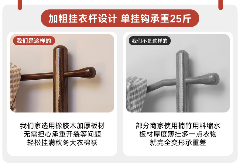• 80cm 벚나무색상 [두꺼운 원목옷장레일, 두꺼운 면옷걸이 가능, 수입고무나무]