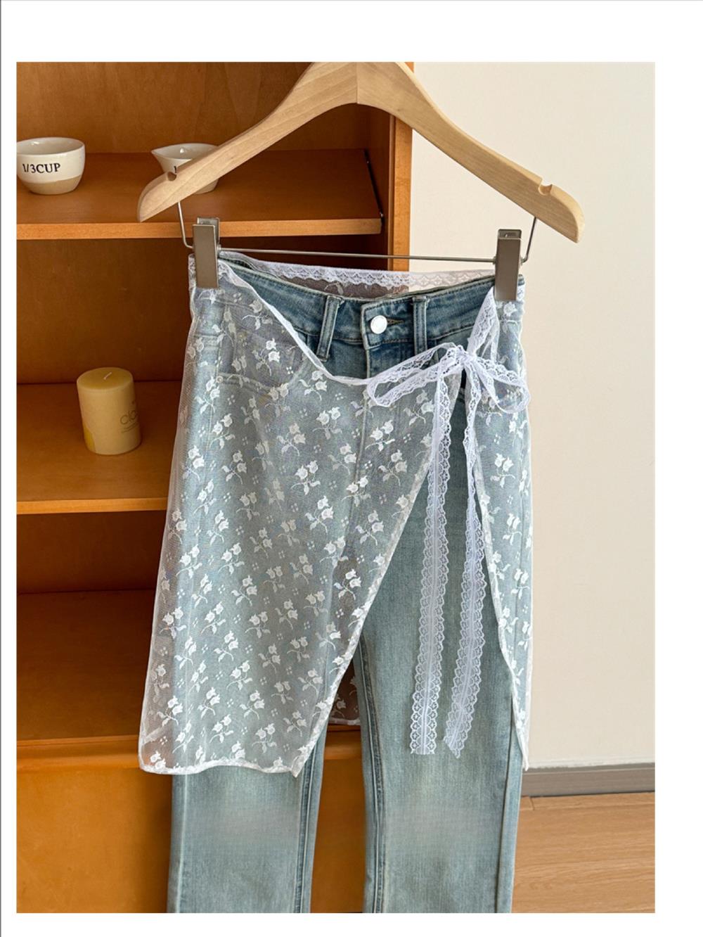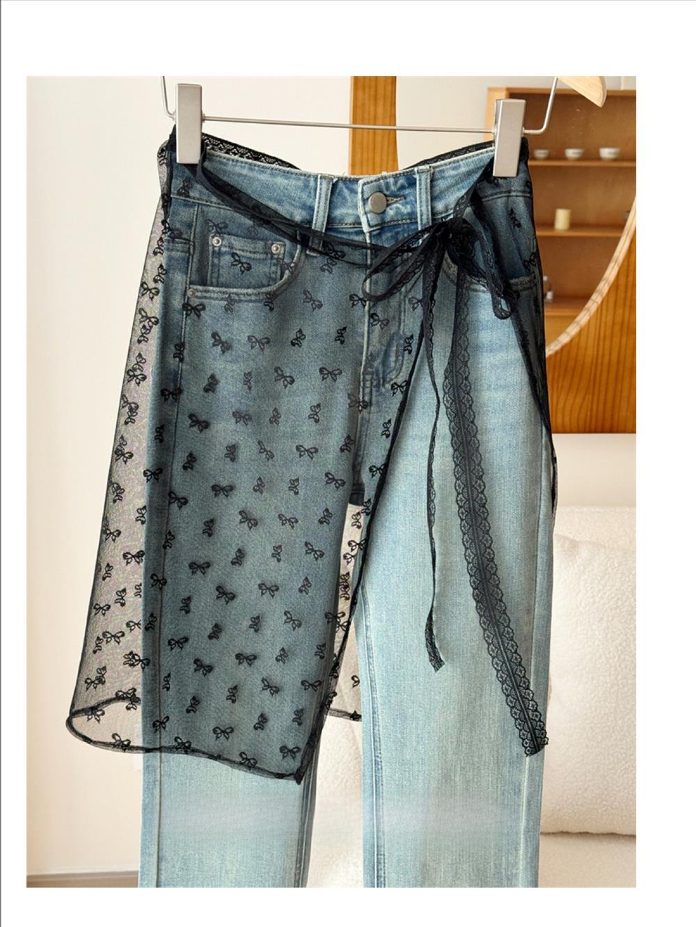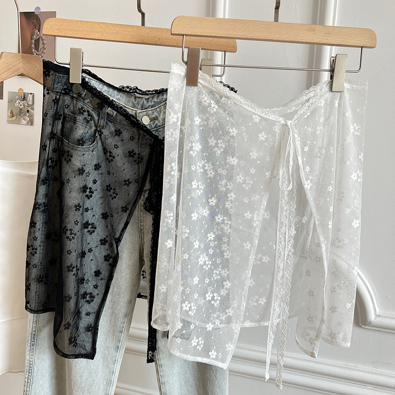 인터넷 연예인 핫걸은 원피스 메쉬 스커트와 커튼 디자인, 패셔너블한 레이어드 레이스 스커트, 여성용 커튼 오버스커트를 입습니다.스토어 가기