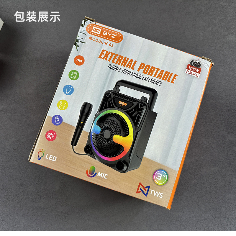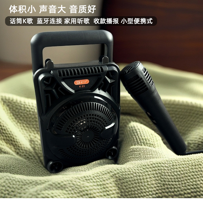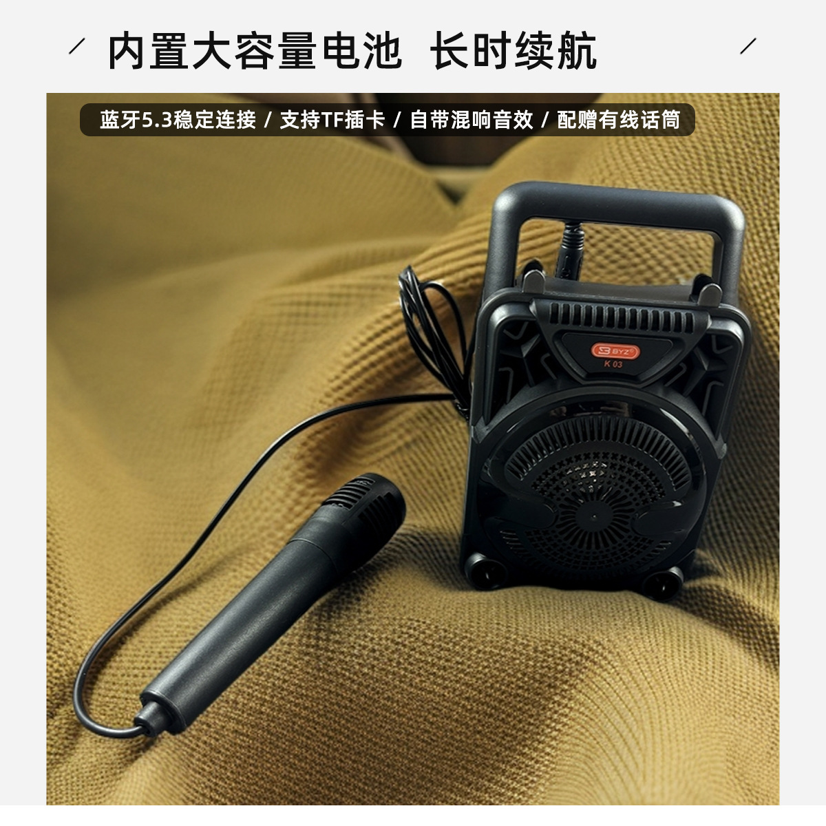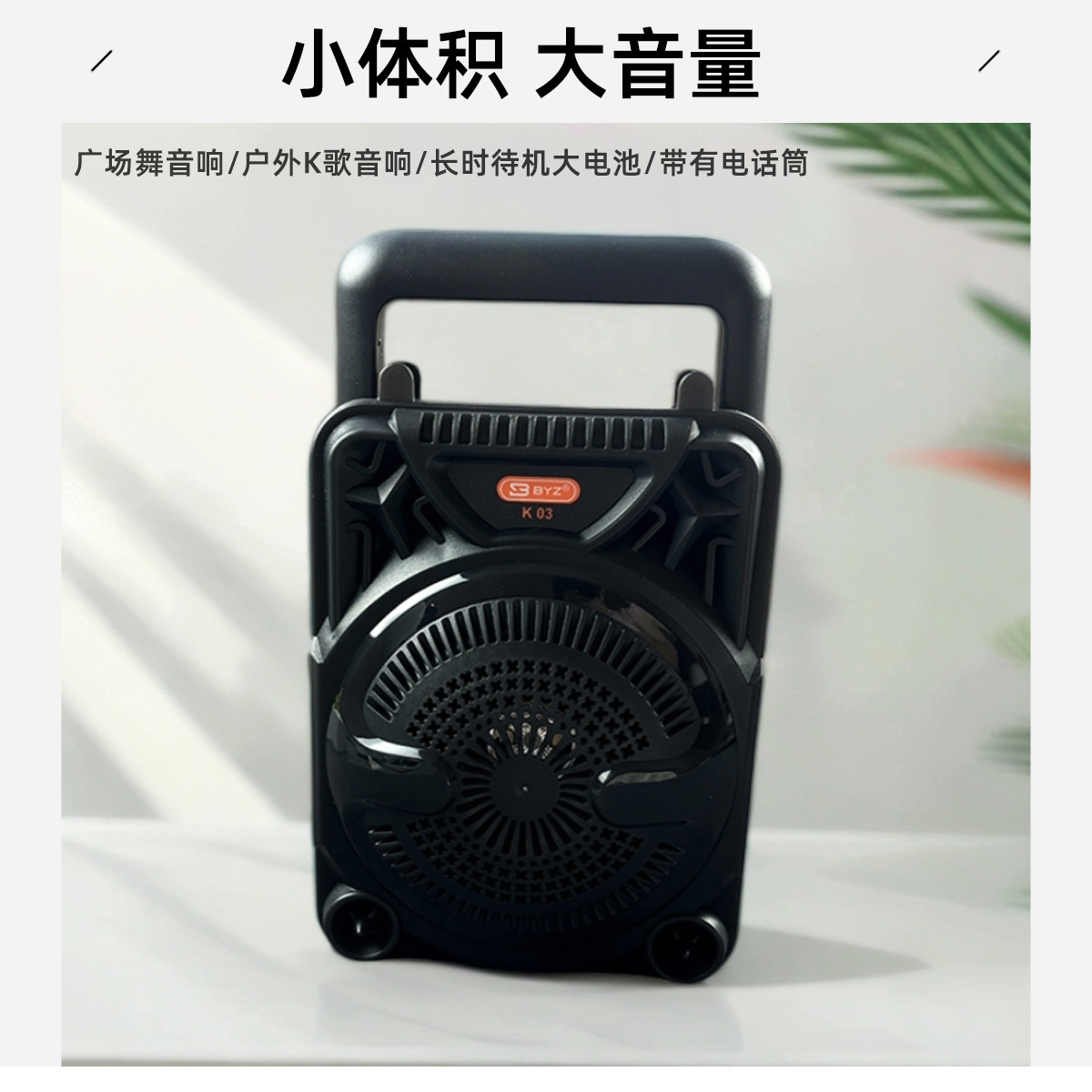 产品特点:小巧便携,可手提方便携带,自带麦克风话筒,支持K歌;