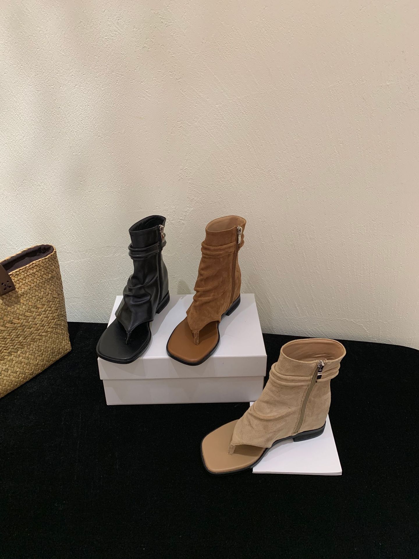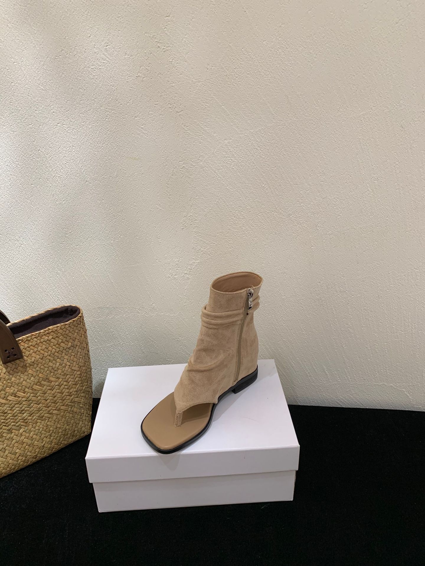 유럽과 미국의 새로운 복고풍 스퀘어 토 이너 키높이 슬리브 샌들, 여성 패션 다용도 플립플롭 로마 하이탑 웨지 샌들