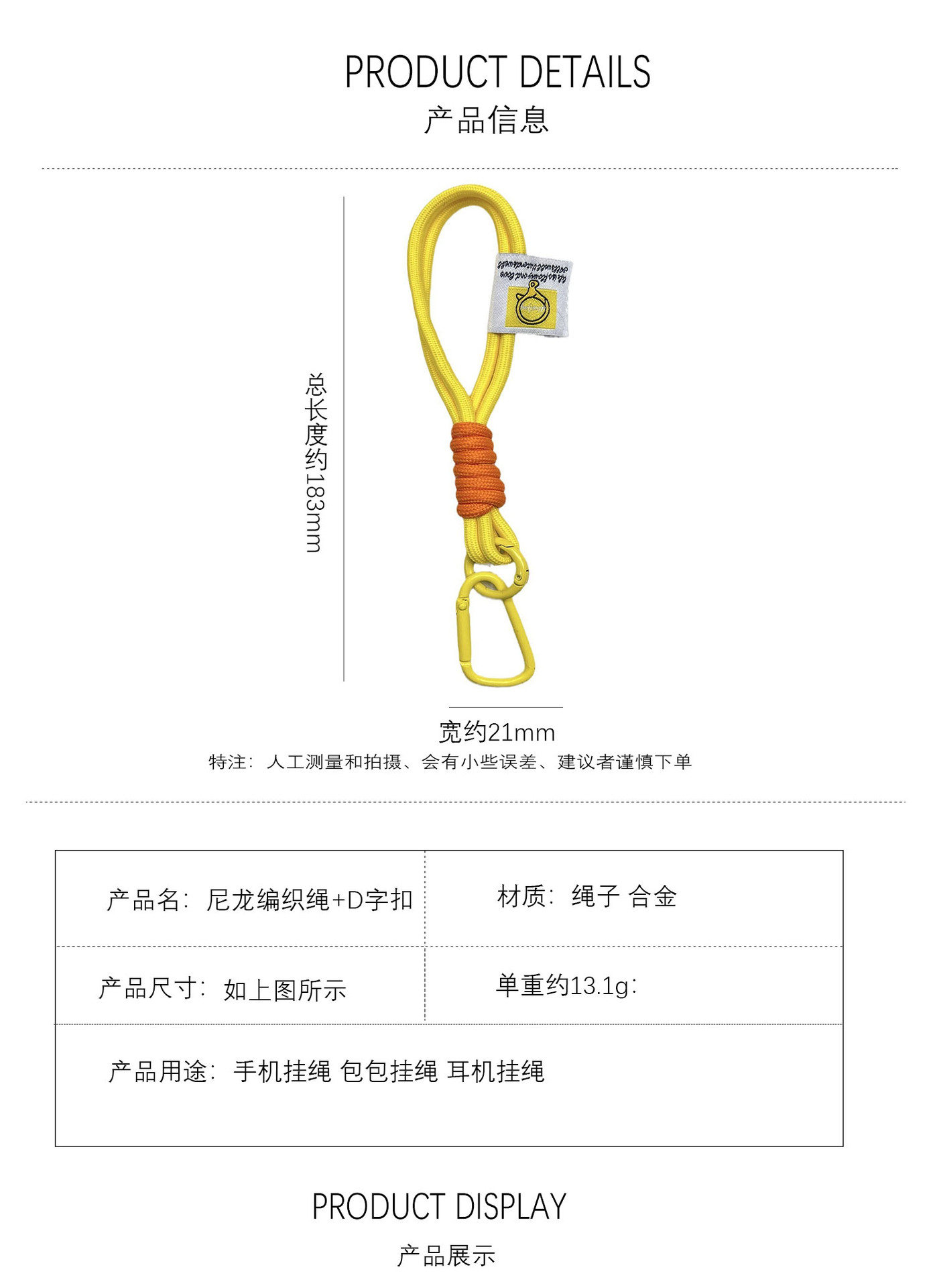 야외 배낭 로프 키 체인 나일론 땋은 끈 카라비너 ​​커플 핸드 로프 가방 끈 인터넷 연예인 인형스토어 가기