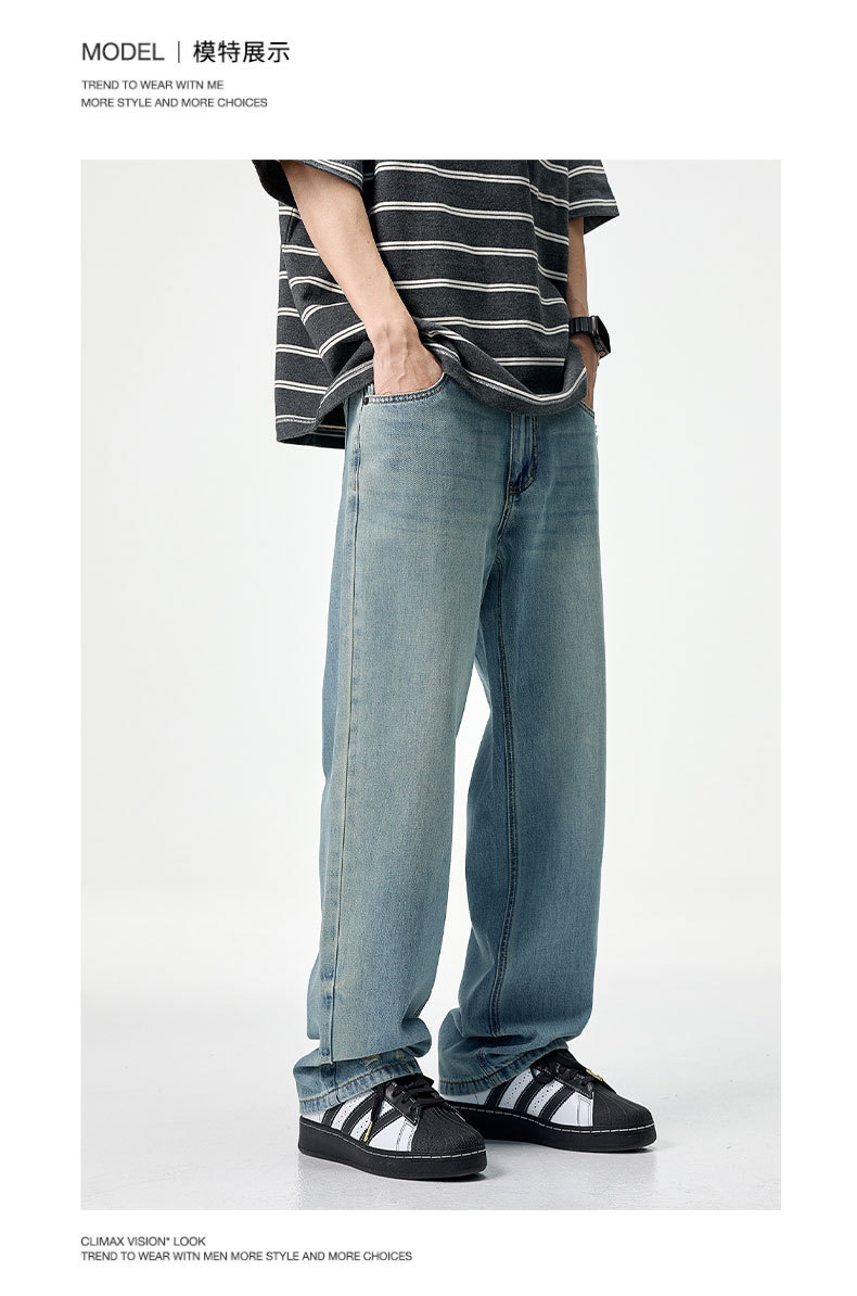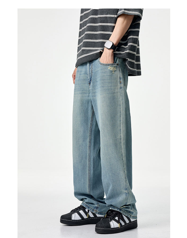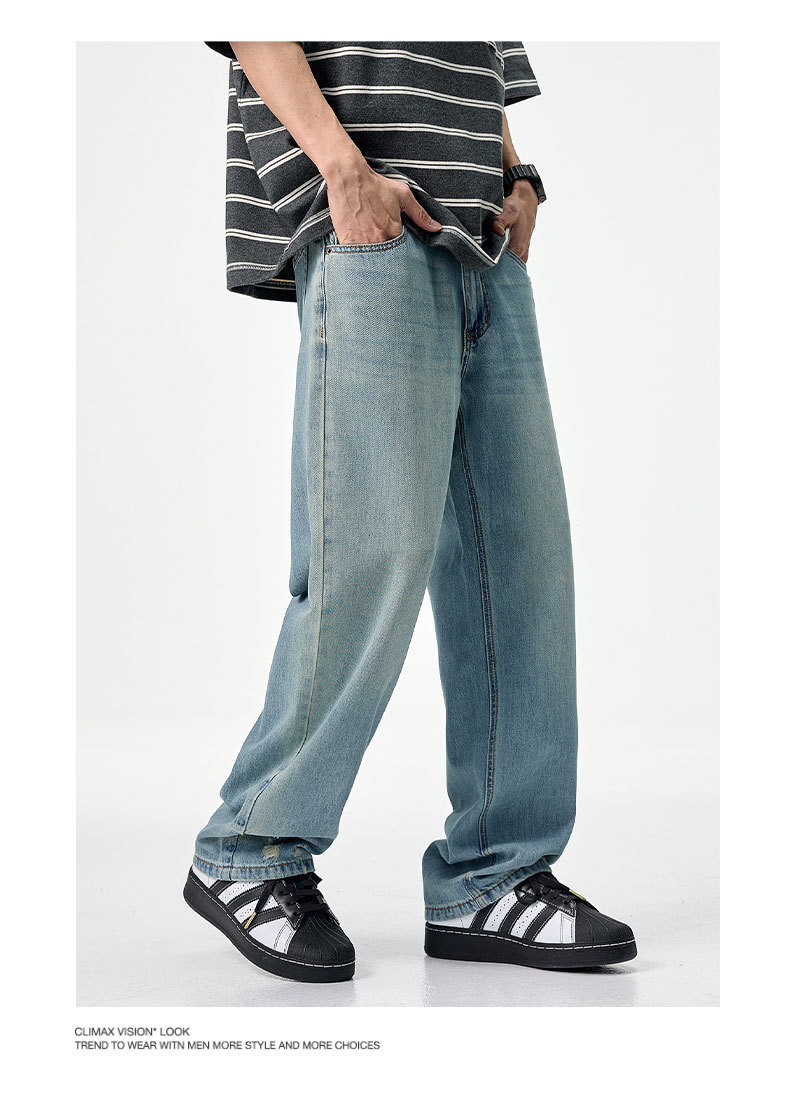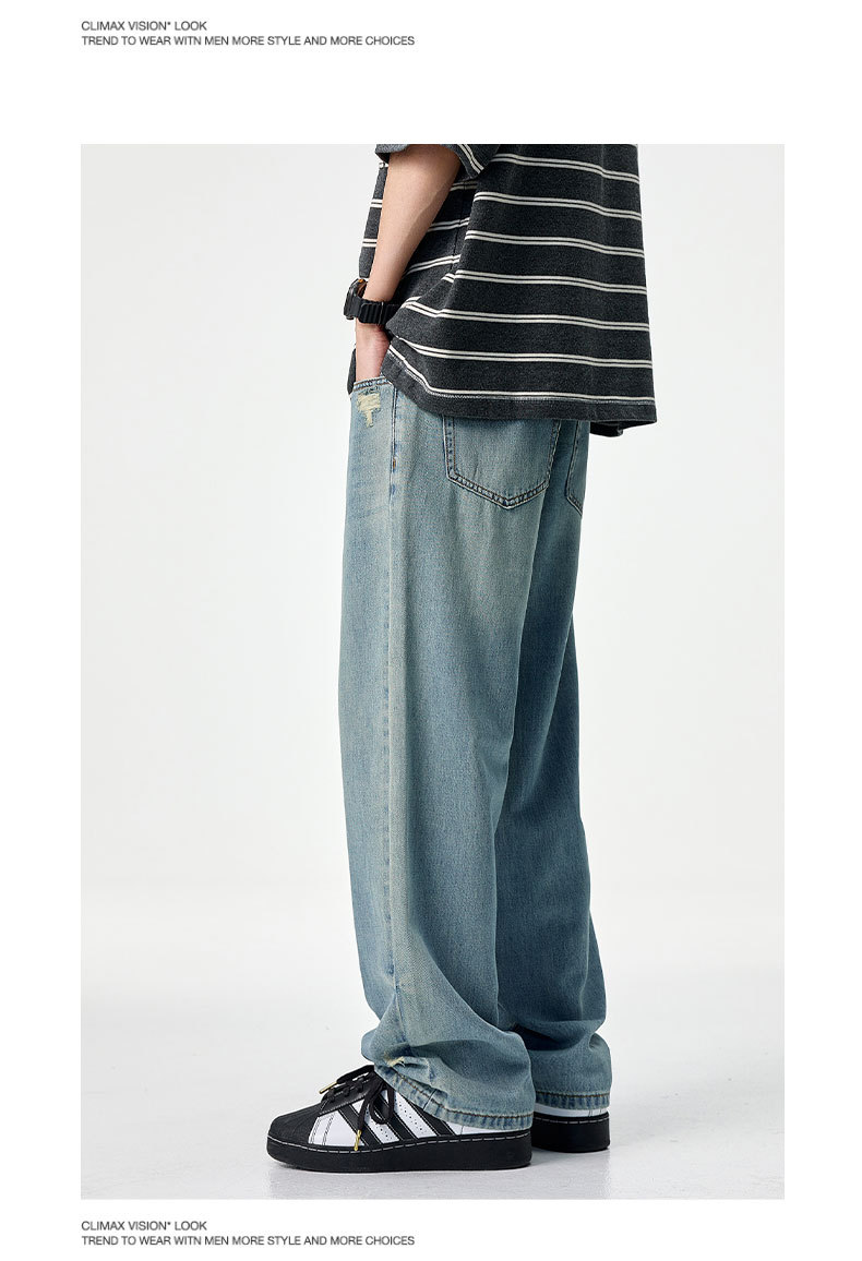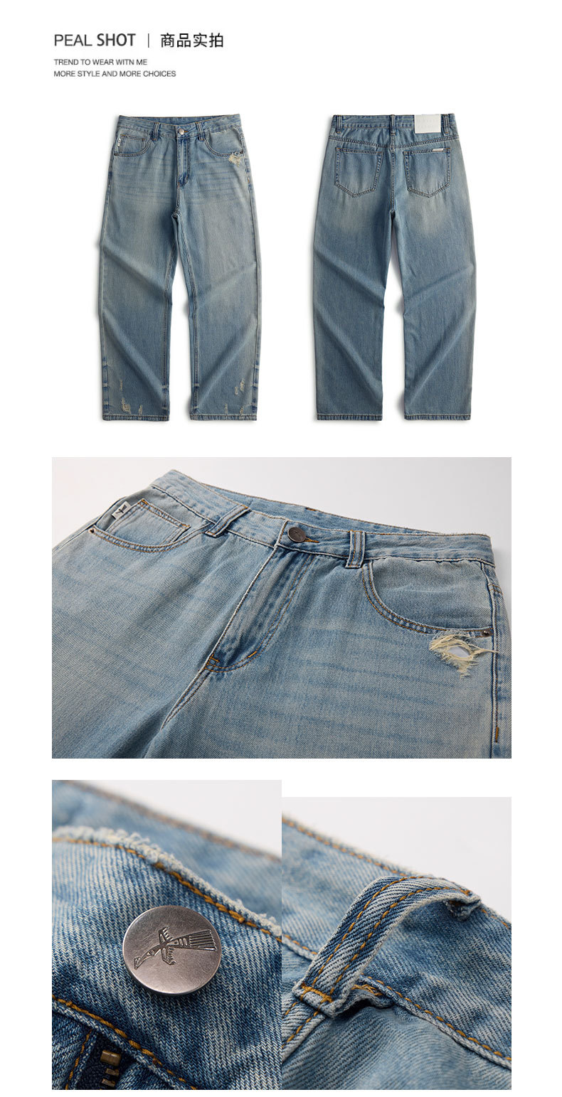 Muqiu 남성복 | 2025 여름 얇은 텐셀 아이스 찢어진 청바지 남성 트렌디 브랜드 루즈한 리오셀 바지스토어 가기