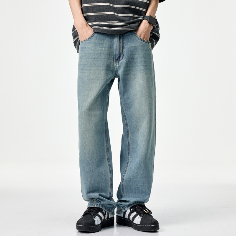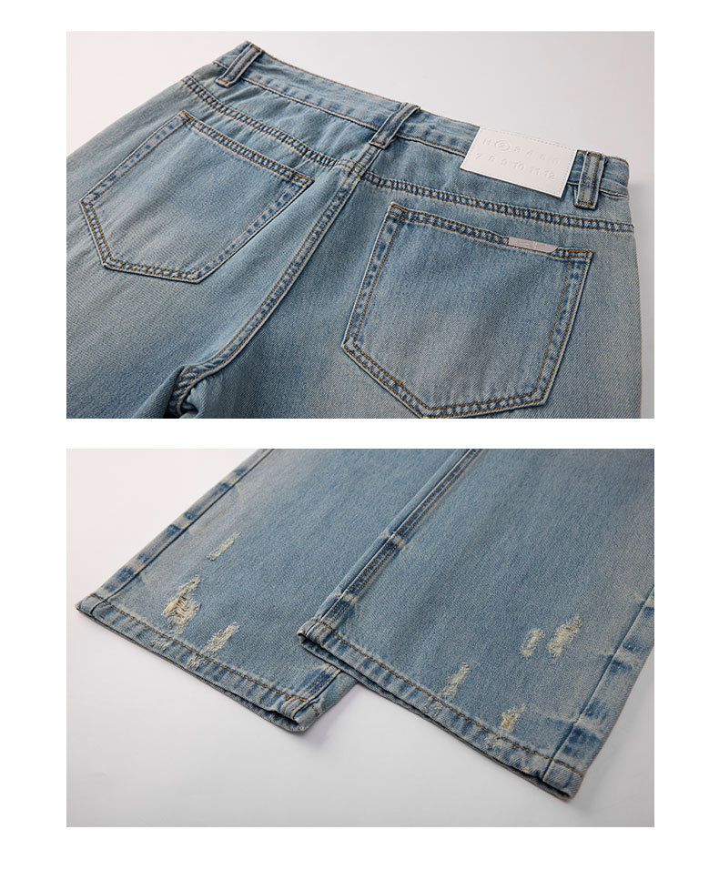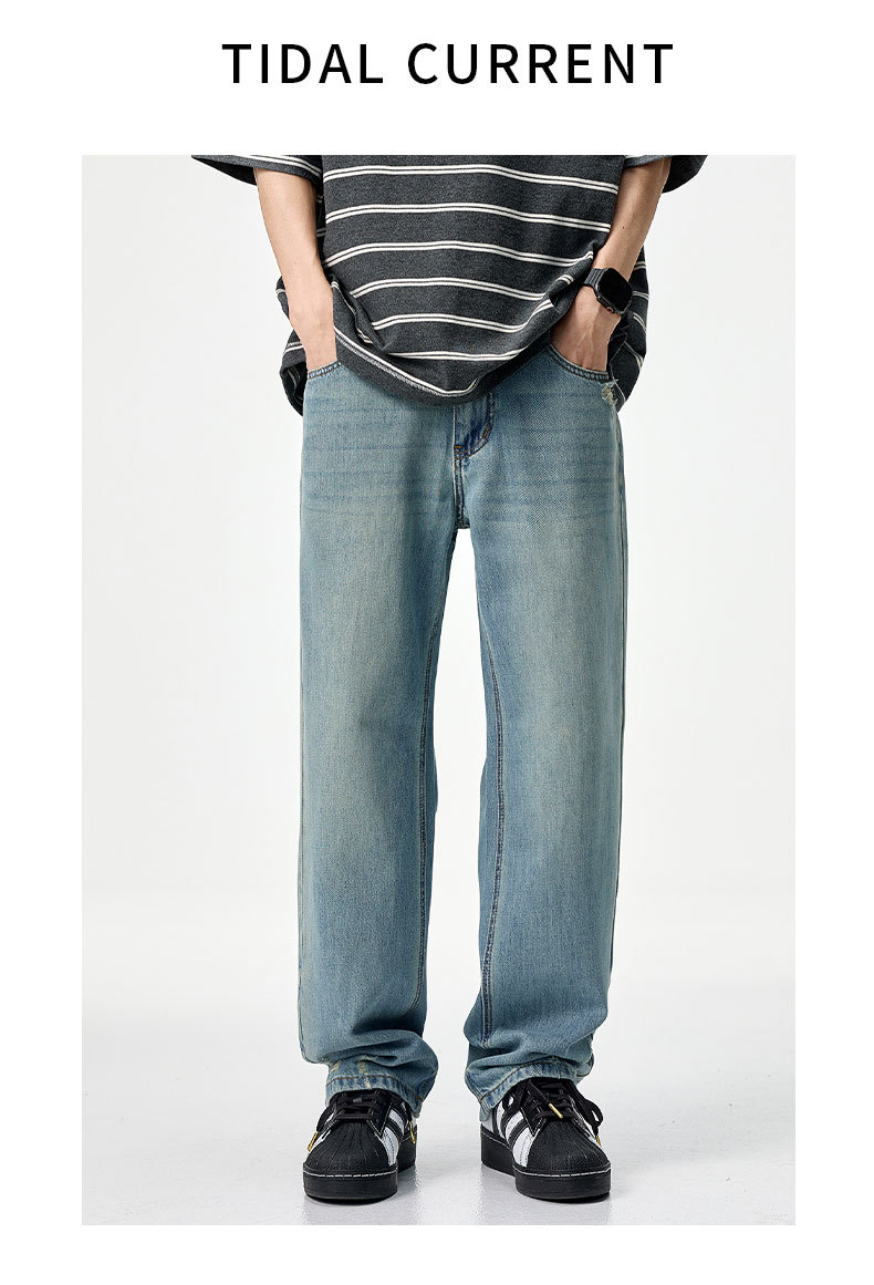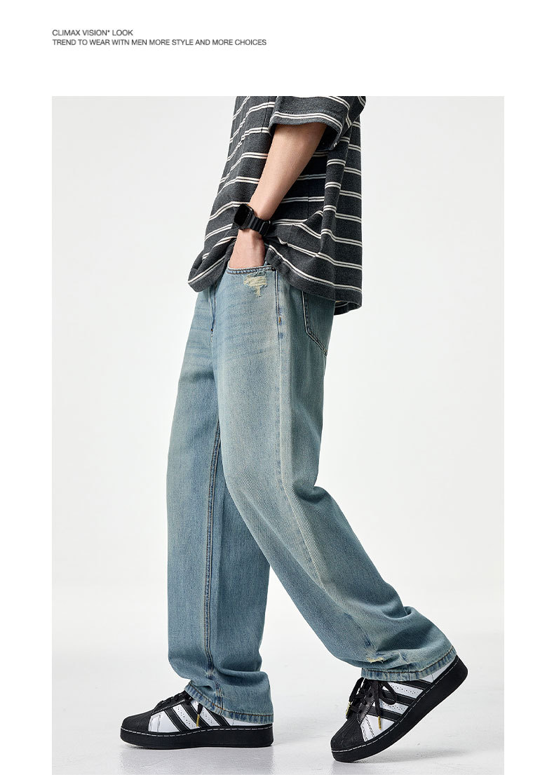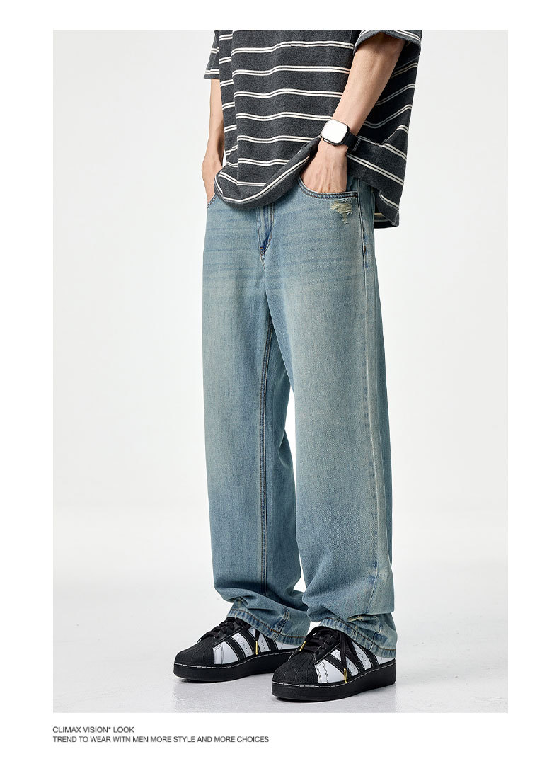 Muqiu 남성복 | 2025 여름 얇은 텐셀 아이스 찢어진 청바지 남성 트렌디 브랜드 루즈한 리오셀 바지스토어 가기