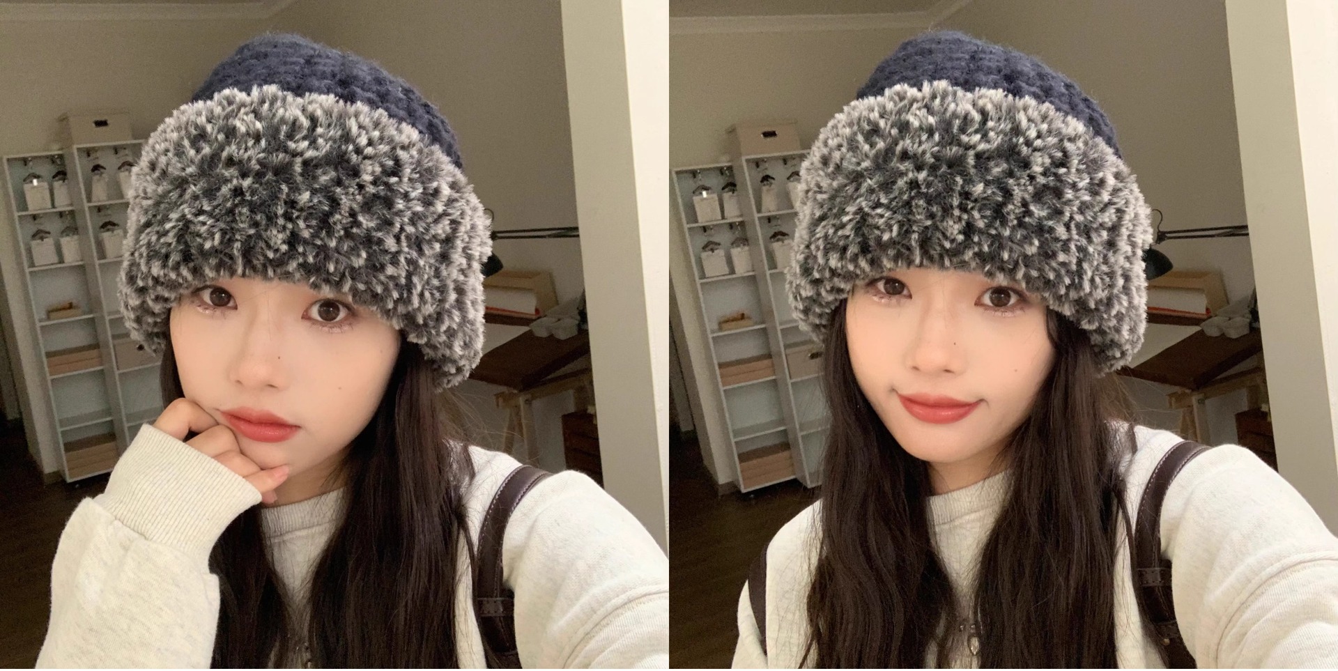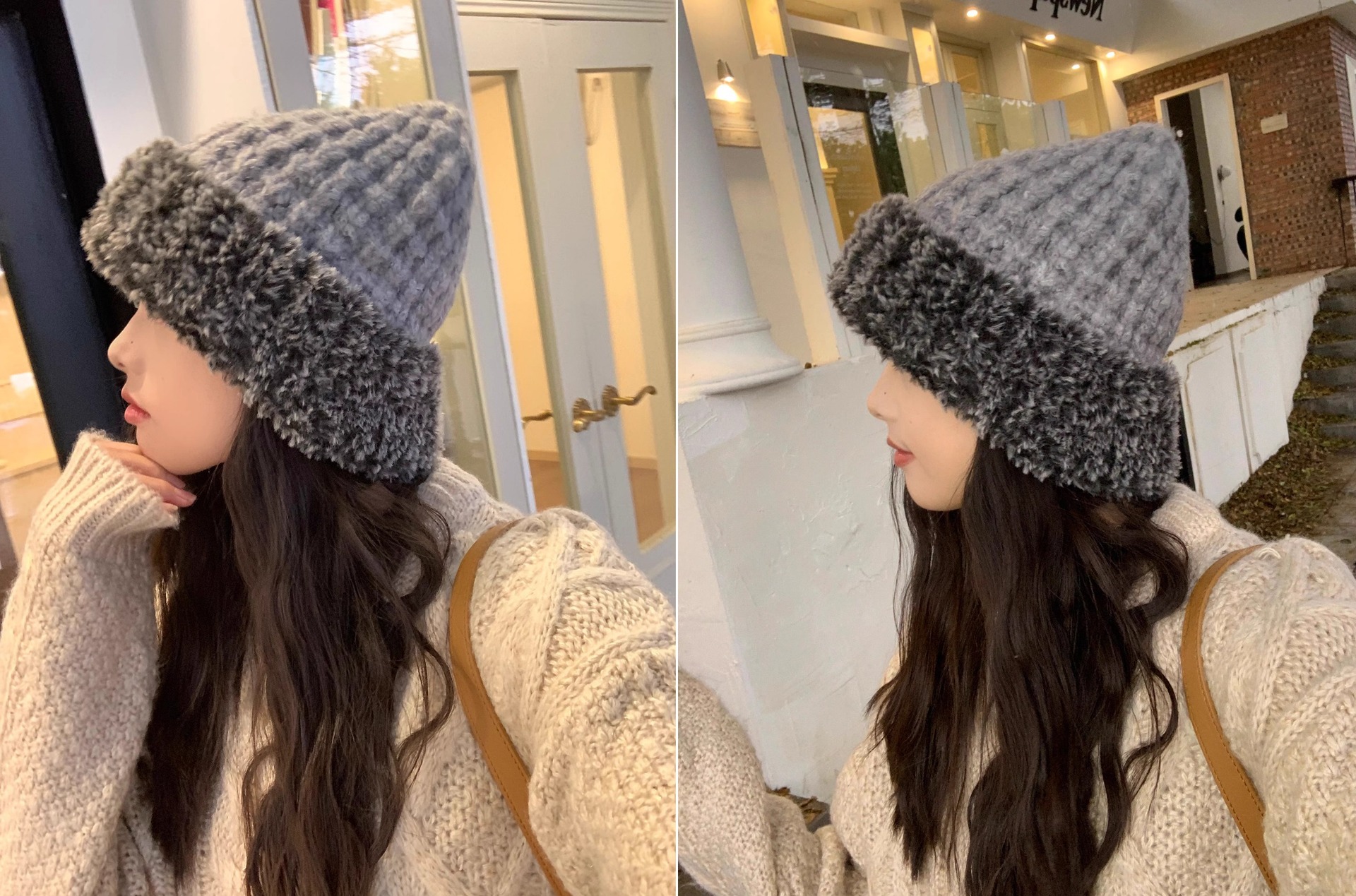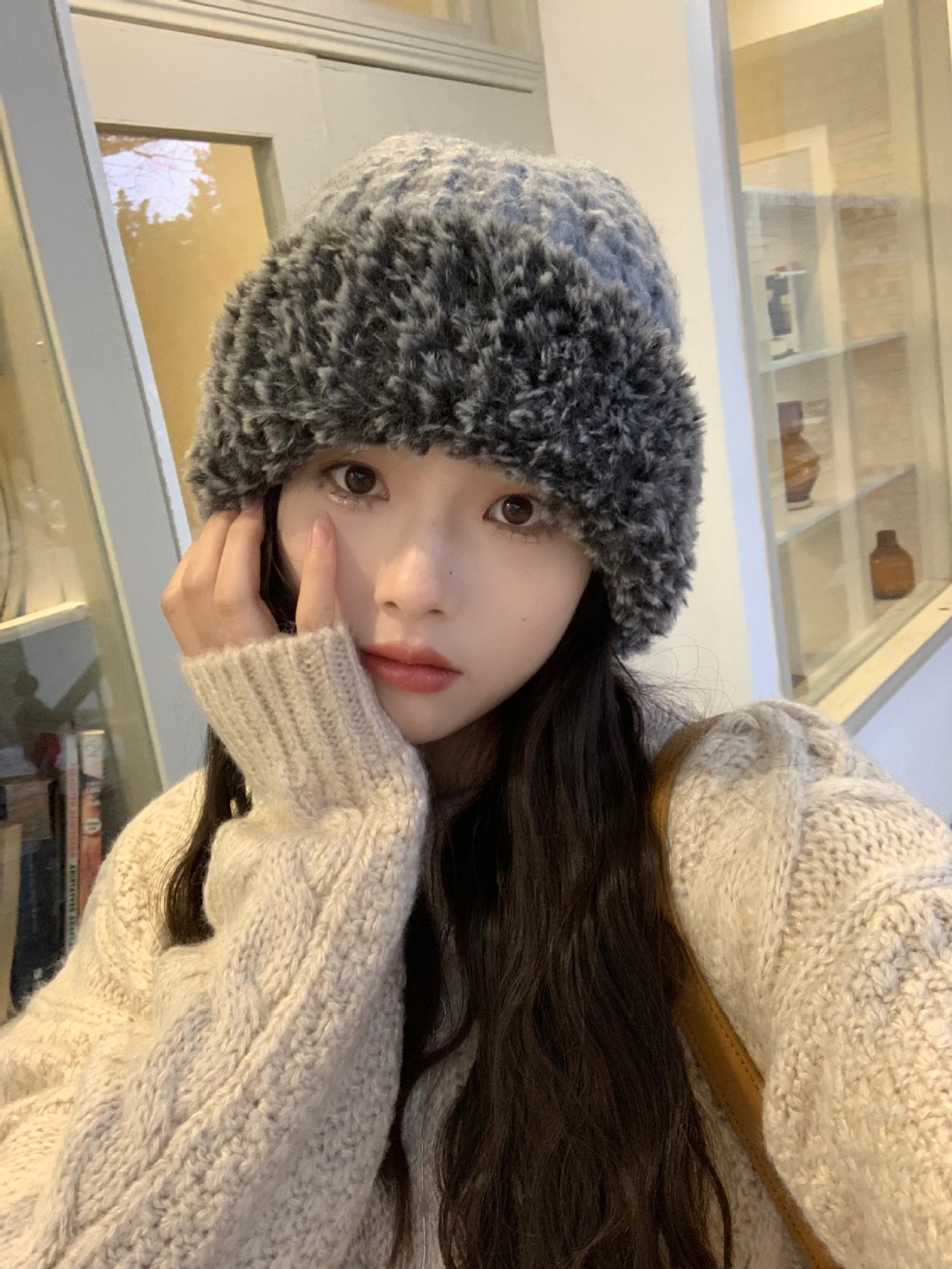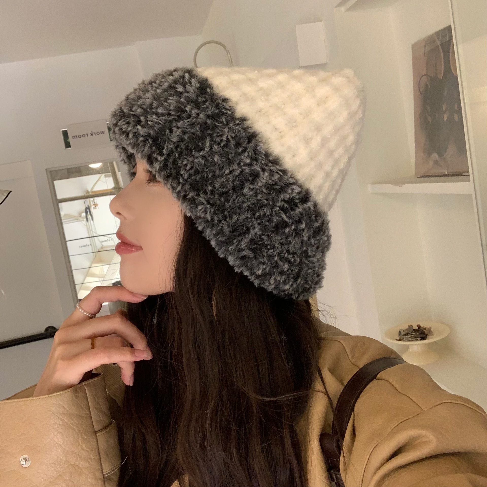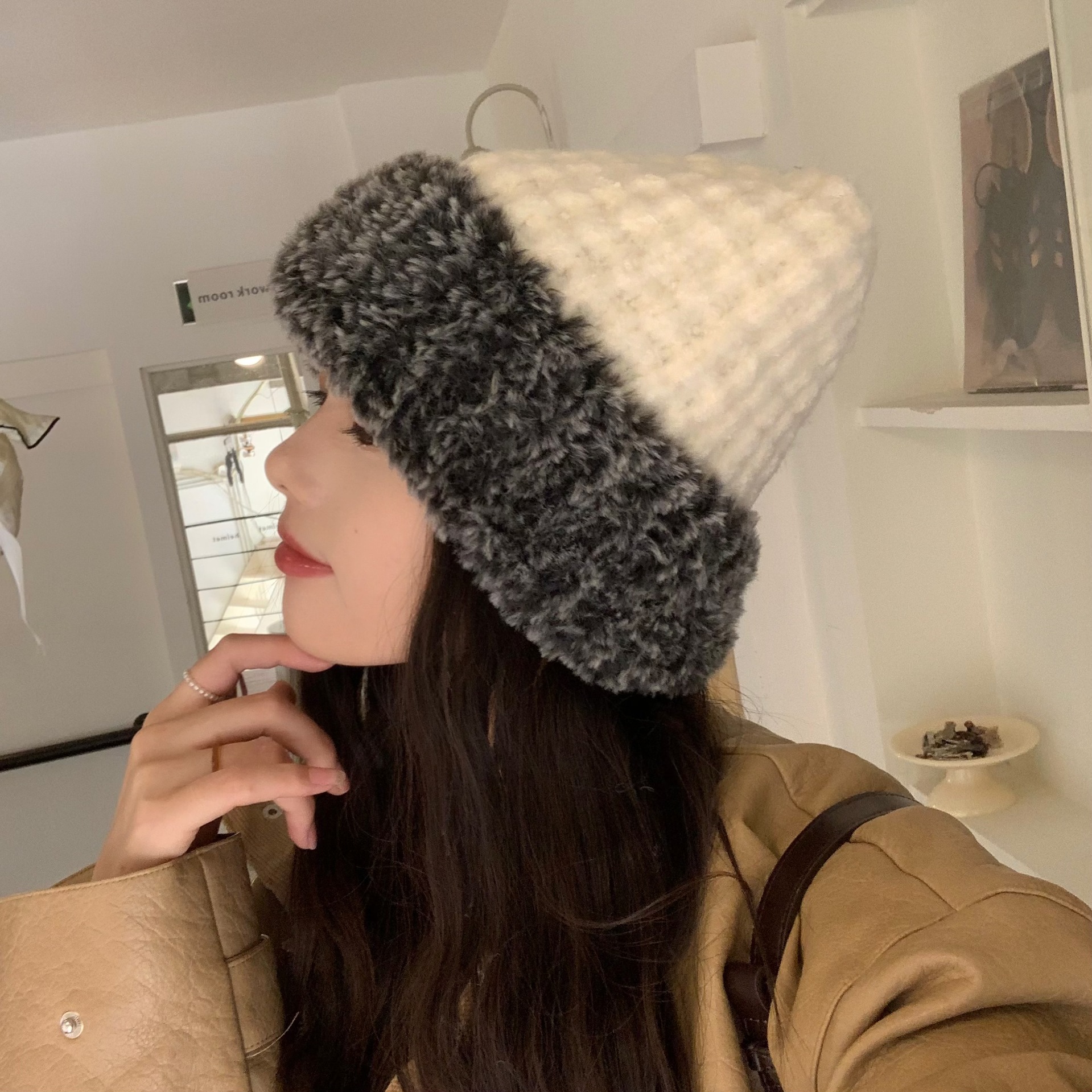 한국 스타일 봉제 니트 모자 여성 가을 겨울 큰 머리 유행 올매치 학생 얼굴 작은 두꺼운 따뜻한 양모 모자스토어 가기